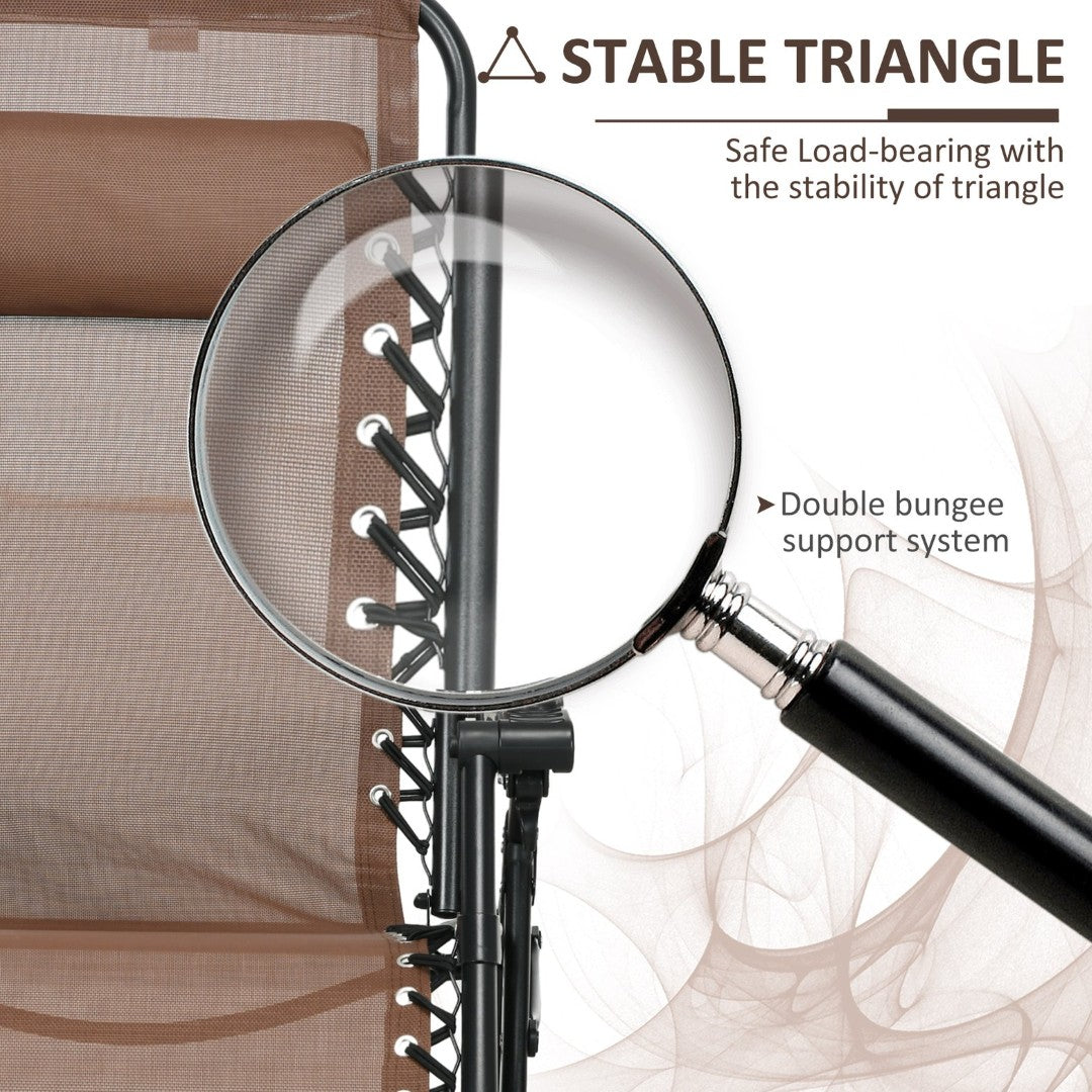 Enjoy outdoor relaxation with this pair of versatile zero-gravity rocking chairs—designed for comfort, convenience, and easy storage. Each chair combines breathable fabric and a padded head pillow with a sturdy folding frame, making them ideal for patios, decks, camping, or tailgating. Built-in cup-and-phone trays and a smooth rocking motion let you recline, lounge, or sit upright with ease.