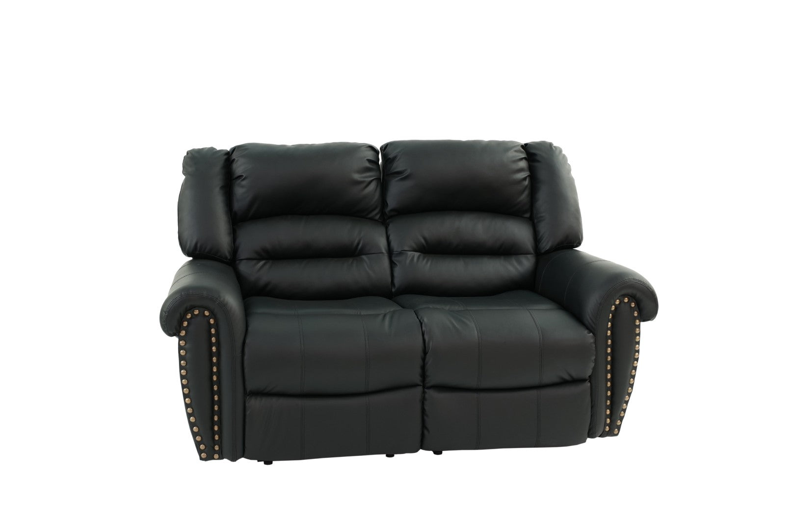 Sink into luxurious comfort with the Plush Relax manual motion loveseat—designed for everyday relaxation with a contemporary silhouette and supportive cushioning. Upholstered in durable bonded leather and finished with tasteful stud trim, this 2-seat loveseat combines style and function for living rooms, den spaces, or media rooms. The three-tiered backrest and padded arm cushions deliver targeted support, while the manual reclining mechanism provides smooth, reliable motion without the need for power.