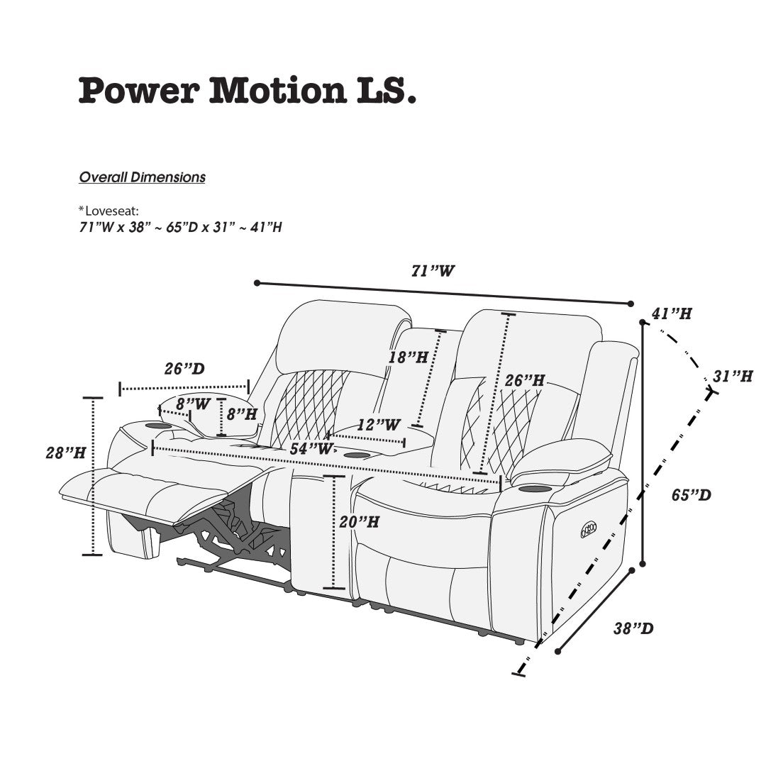 - Listing Includes - 1pc Power Recliner Motion Loveseat Only.