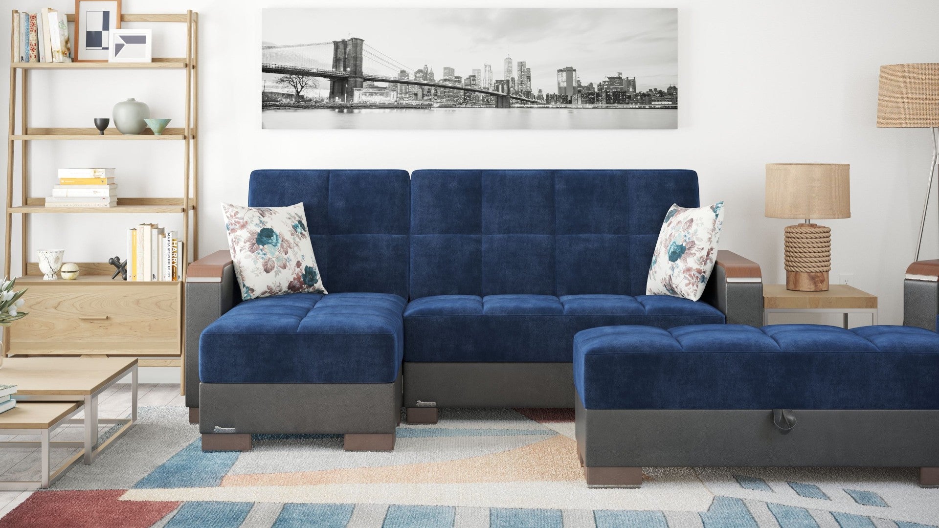 Bring modern versatility and comfortable support to your living space with this convertible chaise lounge from the PrimeNest ZenAero Collection. Upholstered in soft blue microfiber and trimmed with warm wood accents, it functions as a stylish chaise, a roomy sleeper, and a convenient storage solution—ideal for small spaces, guest rooms, or multipurpose living areas.