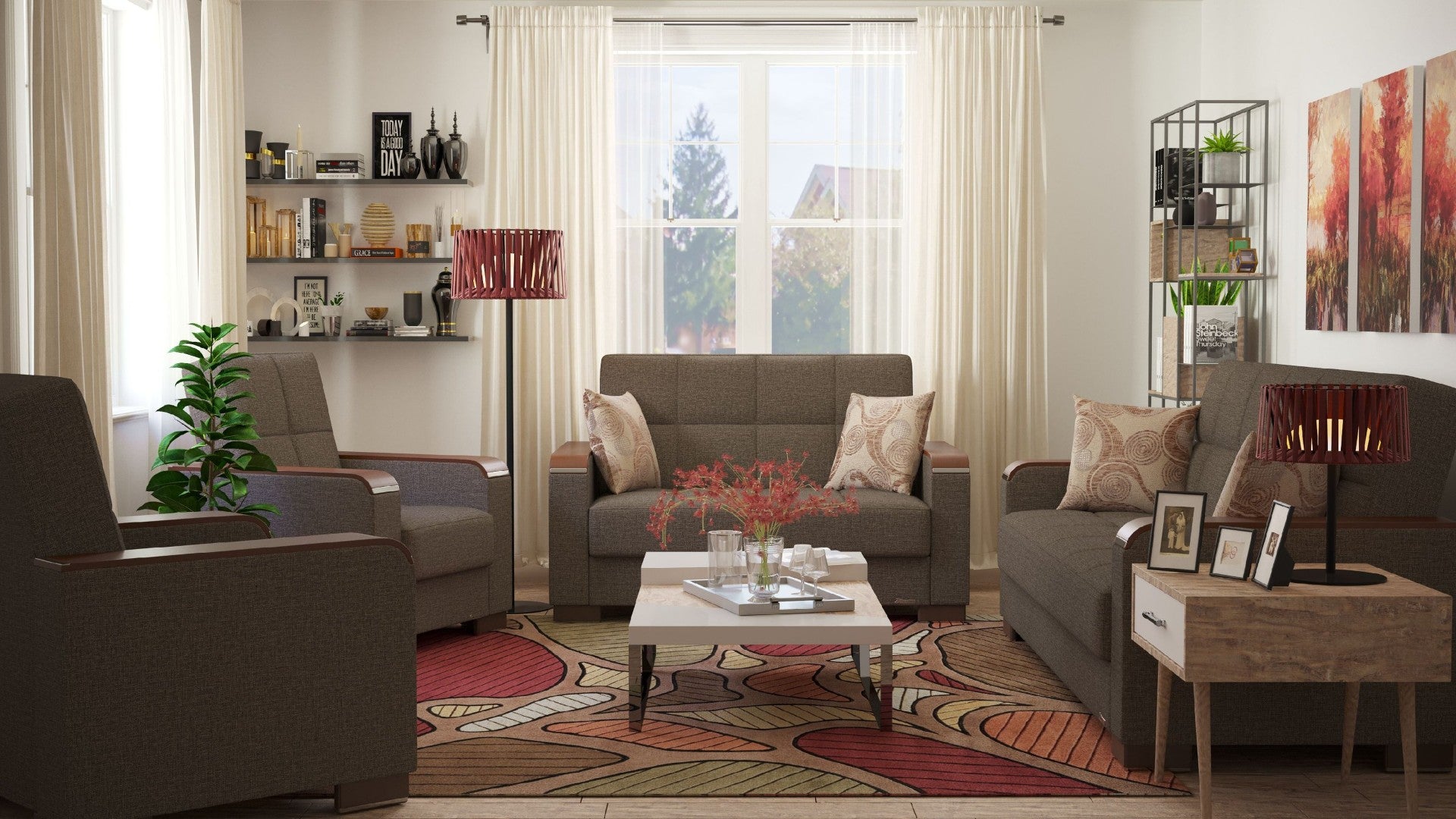 - Upholstery & Materials: Soft brown chenille polyester upholstery with optional microfiber, leather, or mixed-texture combos for a tailored look and feel.