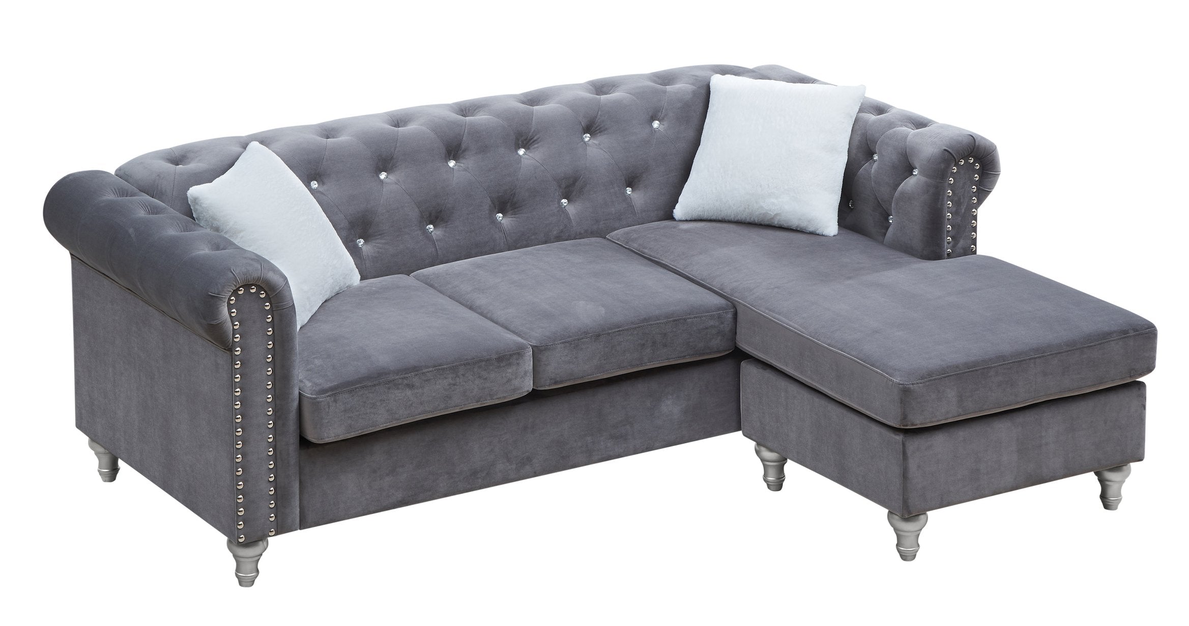 Elevate your living space with the Raisa G860B-SCH Sofa Chaise — a refined blend of classic elegance and modern comfort. Draped in soft gray velvet and accented with sophisticated detailing, this chaise creates a stylish focal point while delivering supportive, lounge-ready seating for evenings of relaxation or entertaining guests.