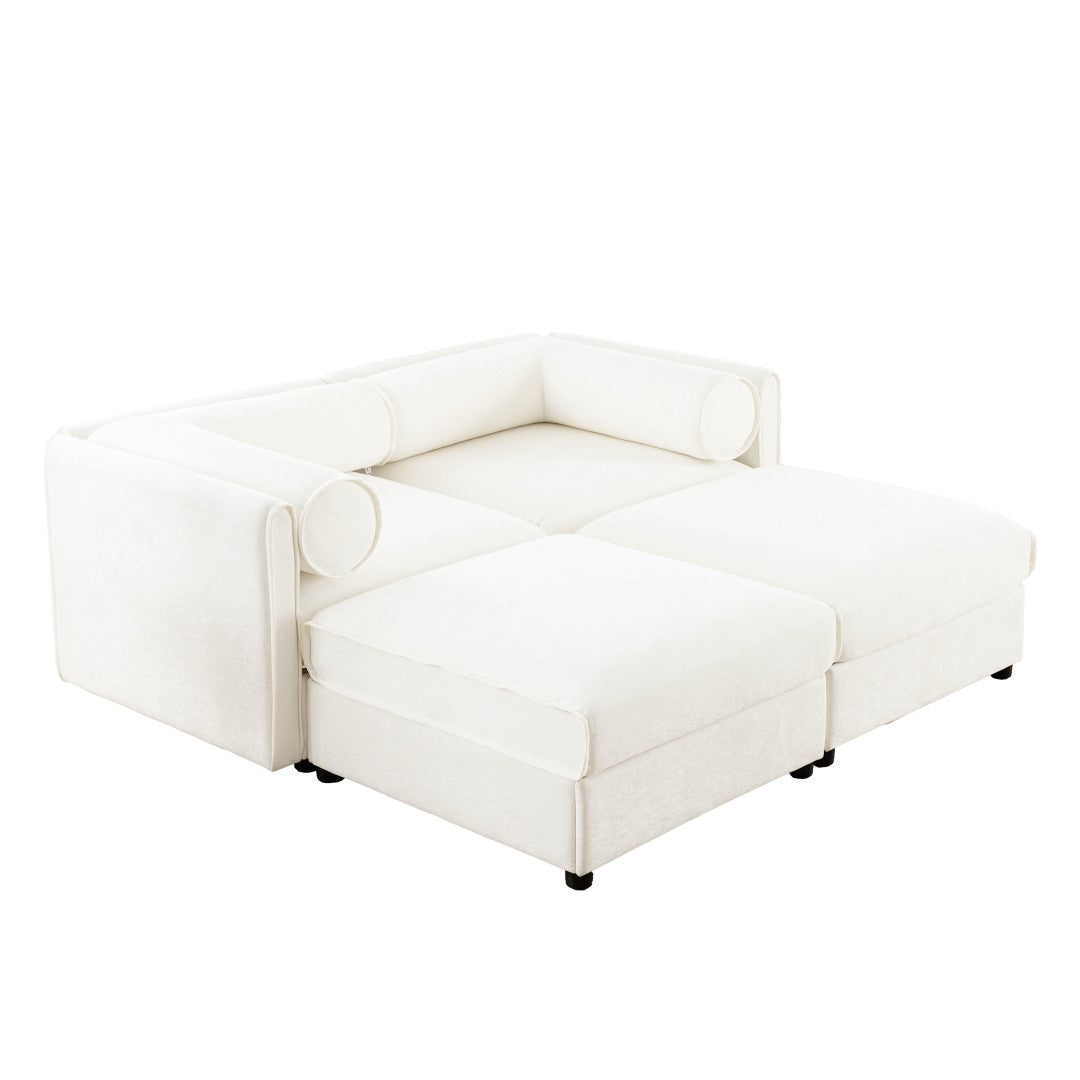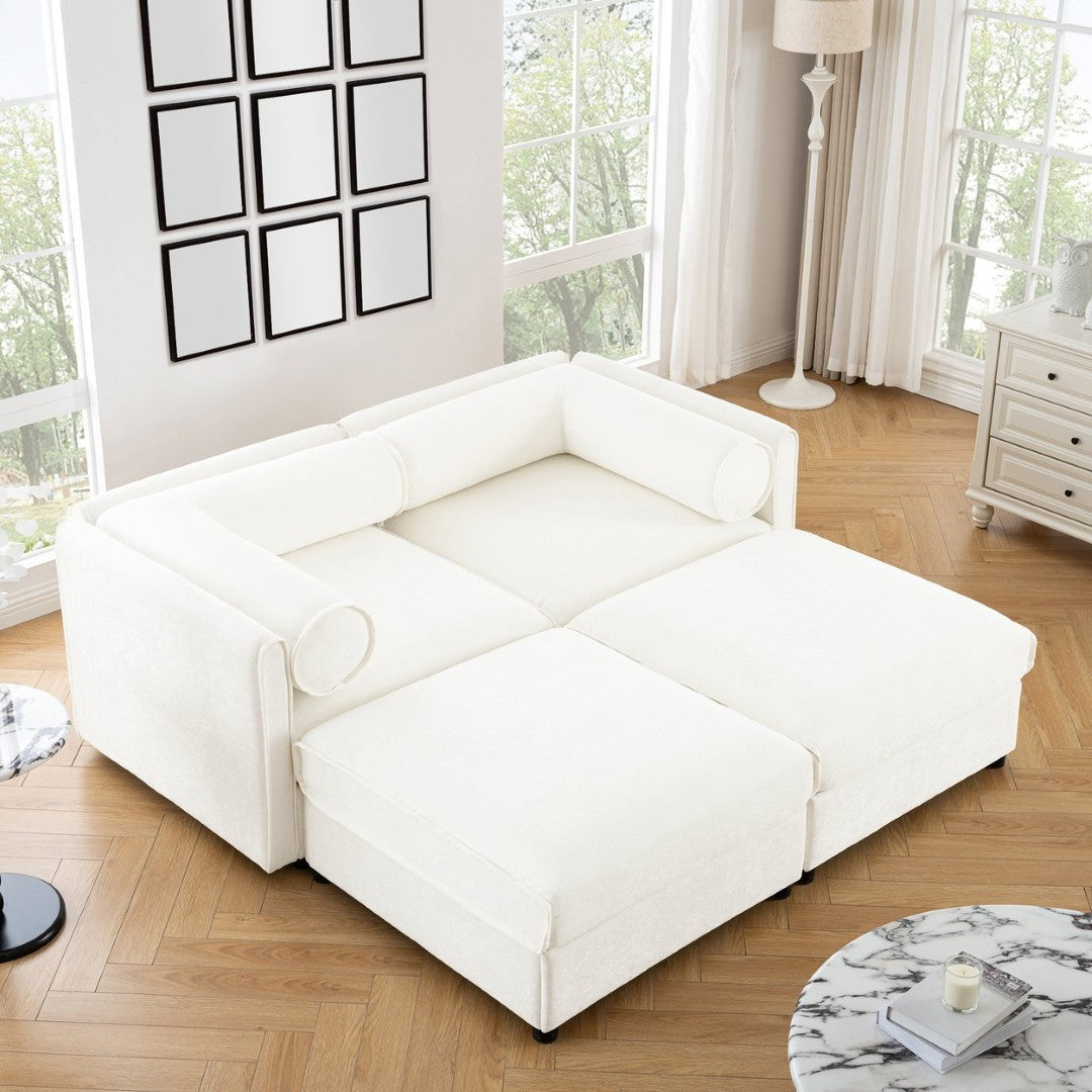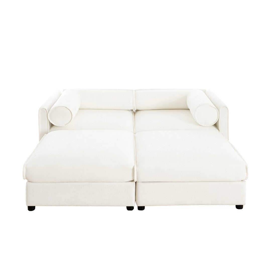 Sink into modern comfort with this elegant white chenille loveseat—designed to blend soft luxury with practical functionality. Plush upholstery and ergonomic cylindrical backrest and armrests create a cozy, supportive seat, while clever hidden storage and a modular layout let you adapt the piece to your room and needs.
