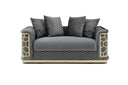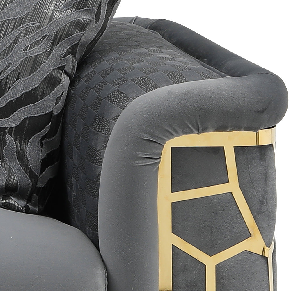 Refresh your seating area with this elegant ivory loveseat that blends contemporary details with everyday comfort. Upholstered in soft micro-suede and accented with patterned fabric and gloss brass trim, it brings a polished, modern look while offering durable construction for reliable use in living rooms, guest rooms, or upscale office spaces.