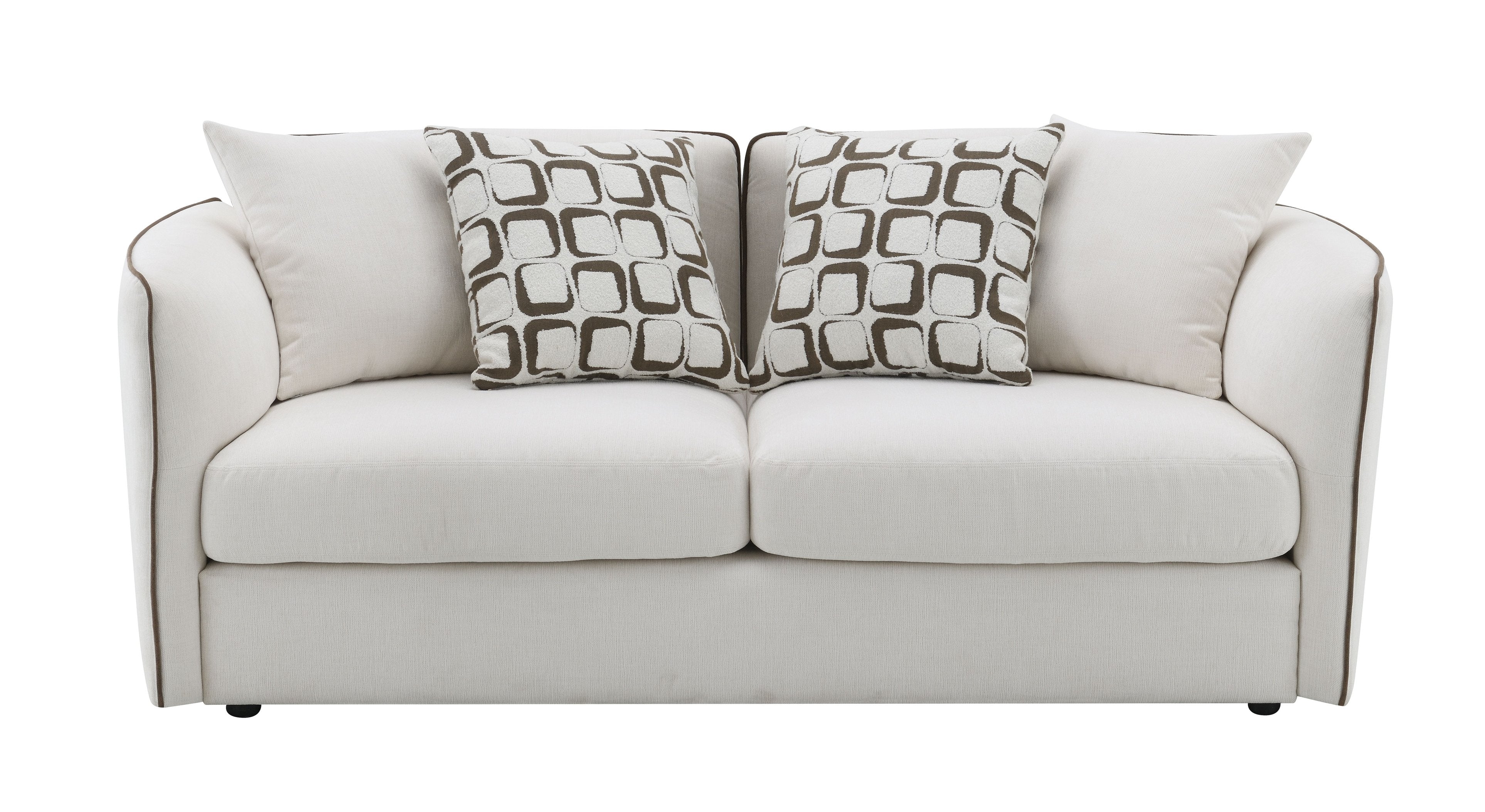 Sink into the soft, contemporary comfort of the Yolanda loveseat — a thoughtfully designed two-seat sofa upholstered in durable beige chenille that blends modern style with everyday functionality. Ideal for apartments, living rooms, or cozy nooks, this loveseat pairs plush seating and supportive construction with easy-care removable covers and four coordinating pillows for instant, inviting appeal.