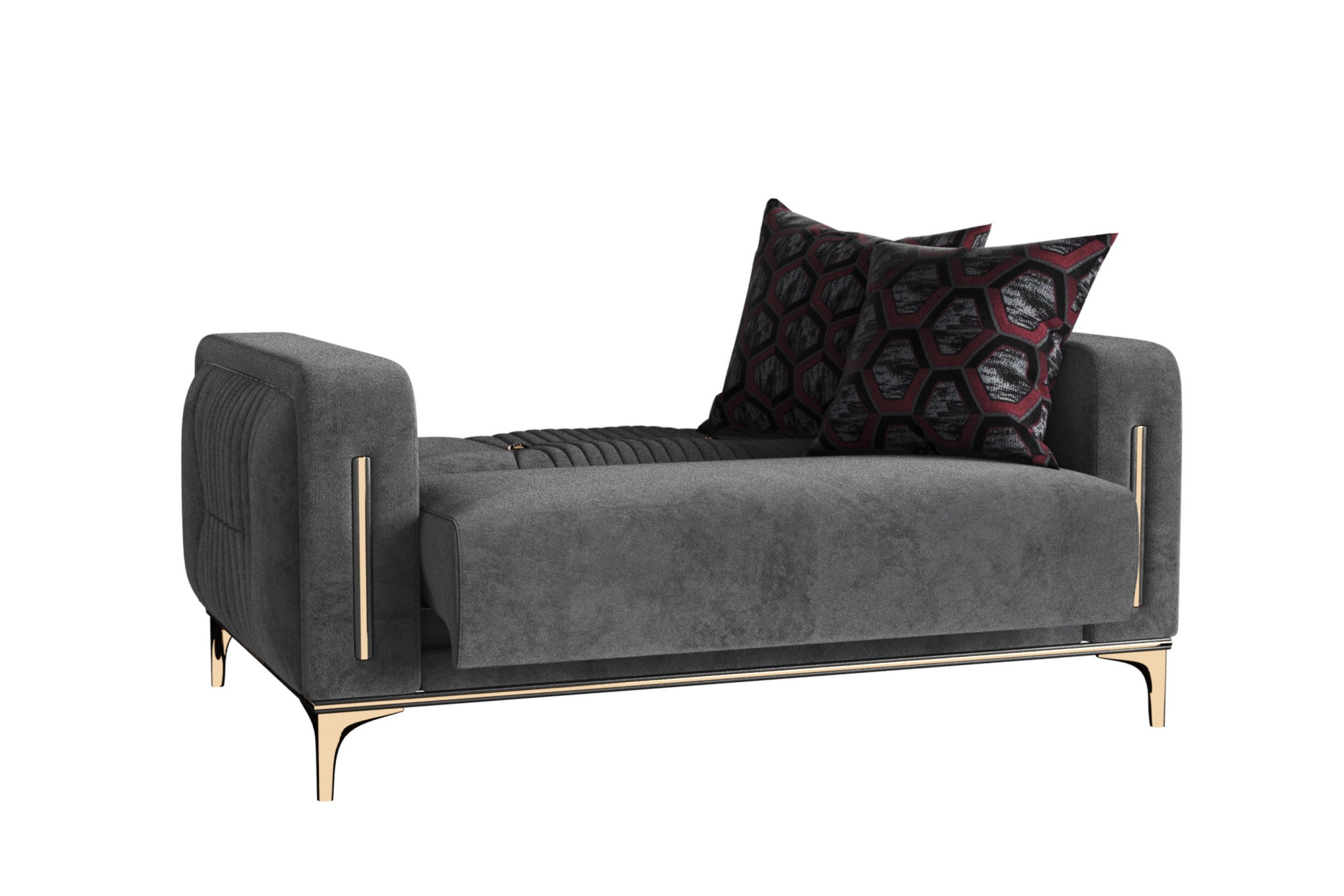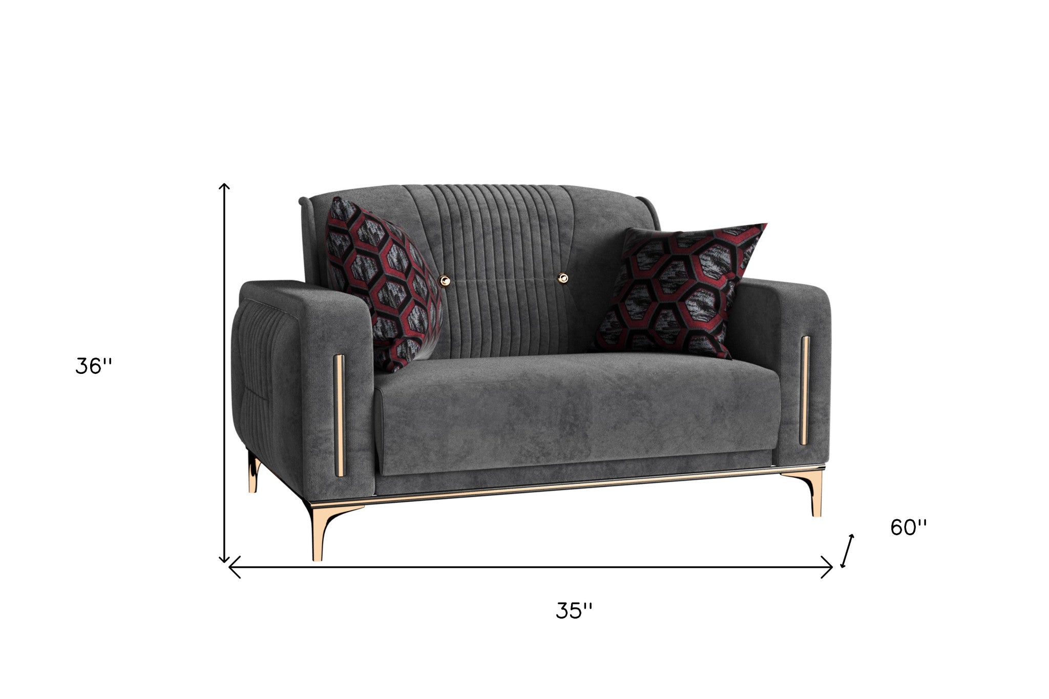 - Mid Century Modern Microfiber and Gold Convertible Sleeper Sofa with Storage.