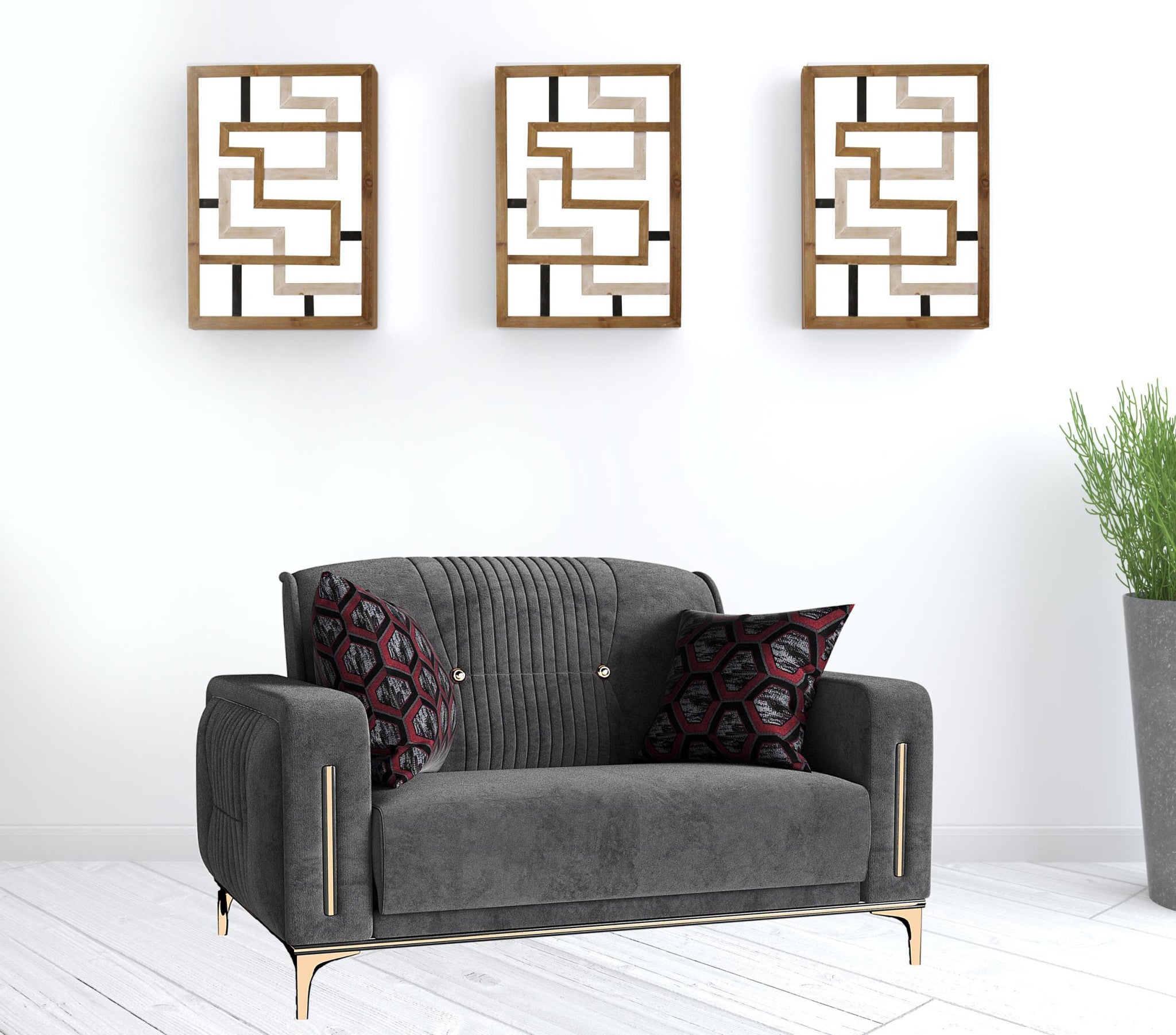- Upholstered with soft and durable microfiber. The color of the legs is gold.