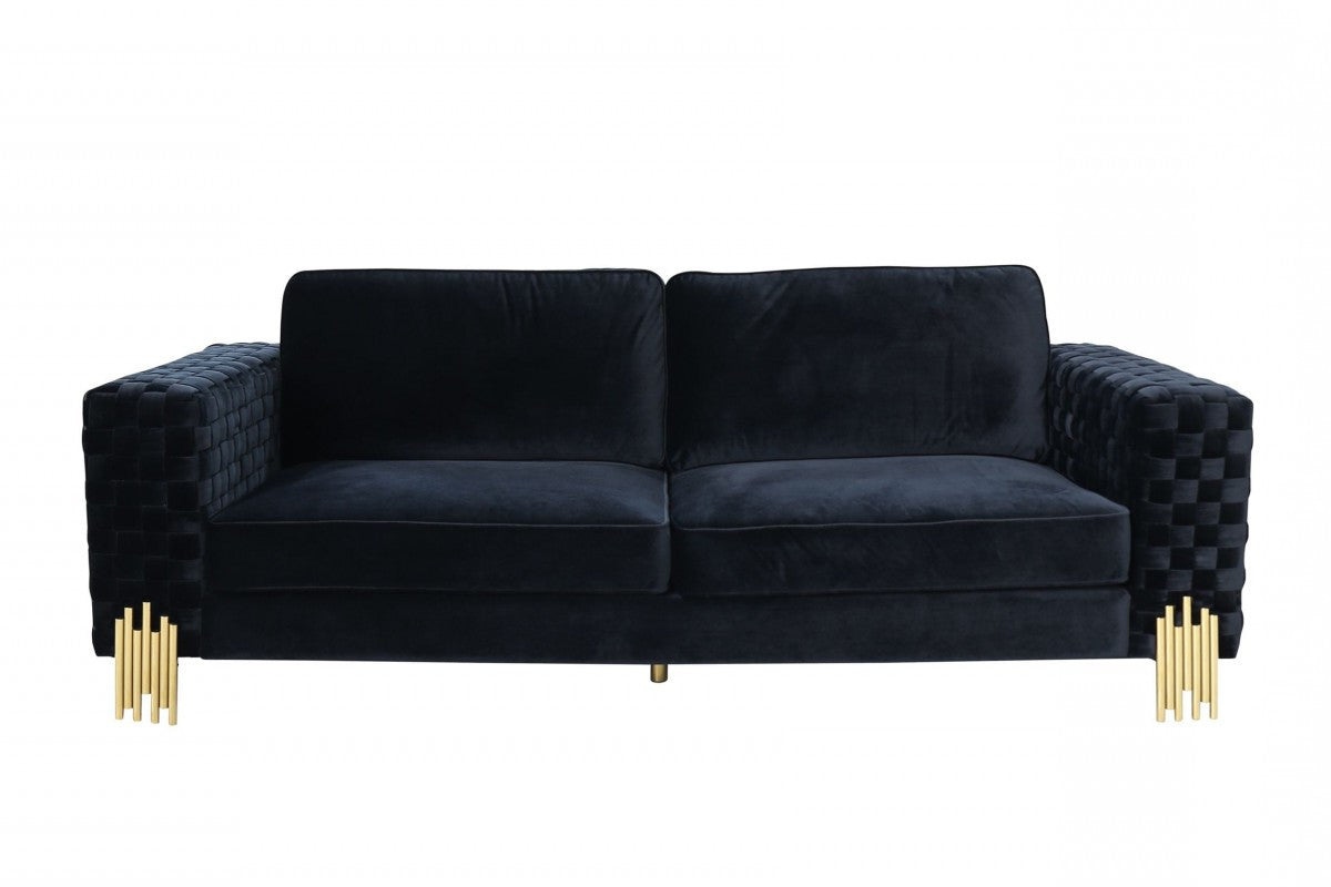 - Luxurious black velvet sofa.