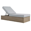 - Outdoor Patio Chaise Lounge Synthetic Rattan Weave Powder-Coated Aluminum Frame Water and UV Resistant All-Weather Cushions Non-Marking Foot Glides Assembly Required