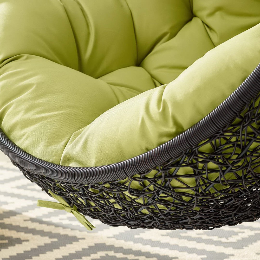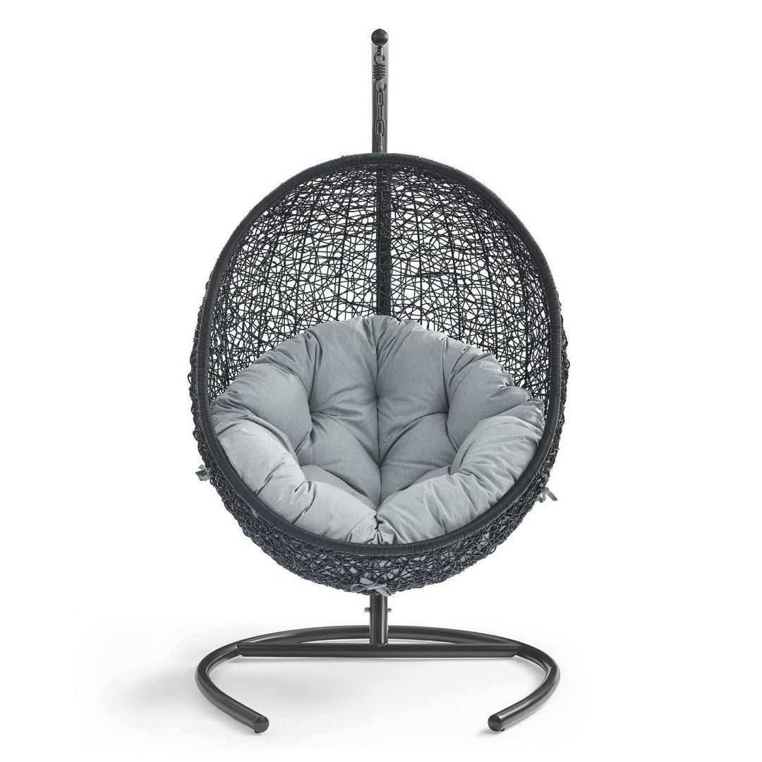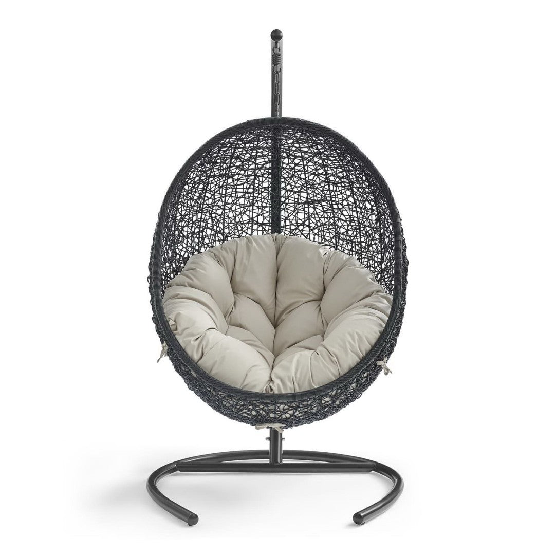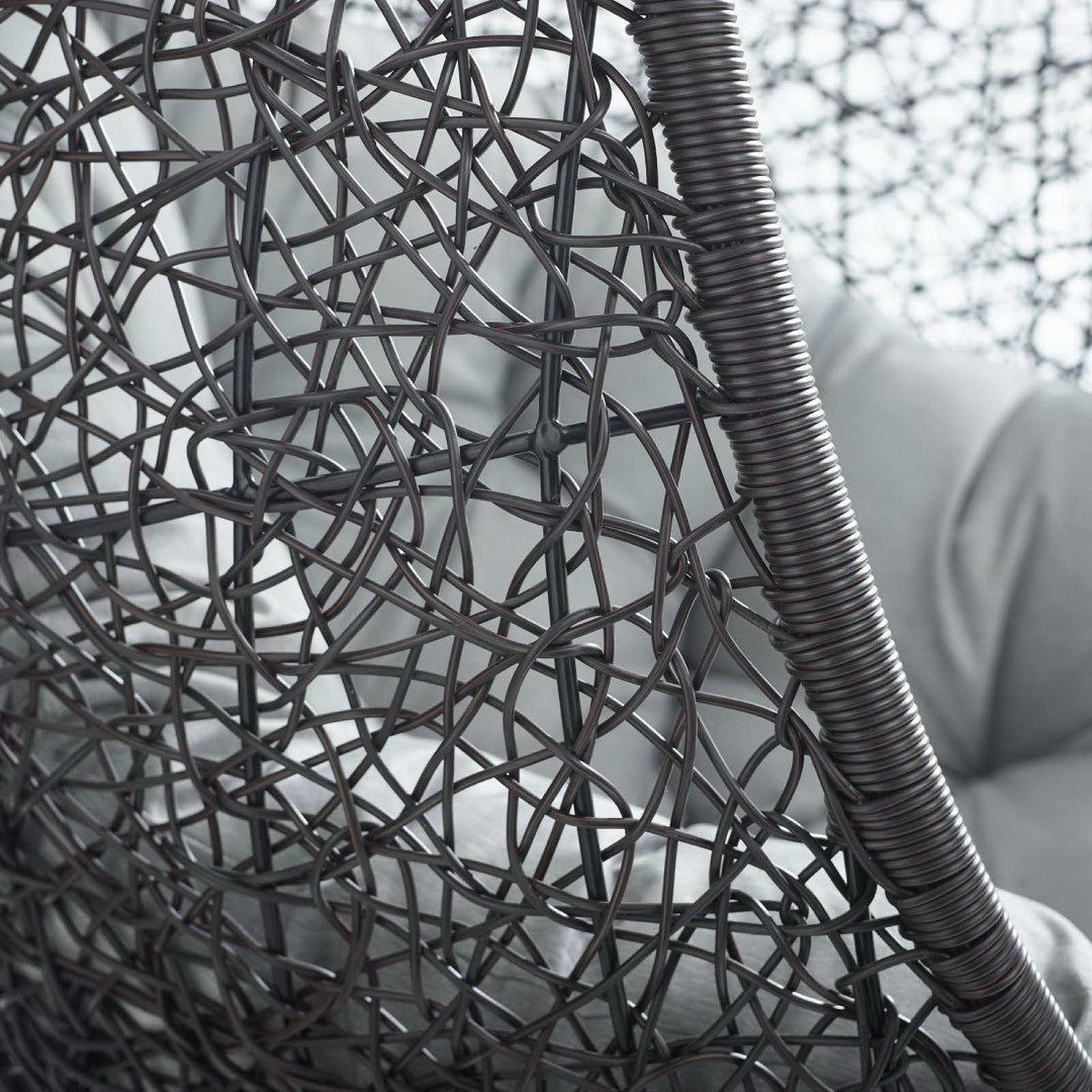Experience outdoor relaxation reimagined with the Encase Swing Outdoor Patio Lounge Chair. Designed to combine sculptural style with everyday comfort, this hanging chair creates a private, cozy retreat in your garden, patio, or sunroom. The durable espresso metal stand and woven rattan seat cradle plush, all-weather cushions for a suspended seating experience that’s both visually striking and supremely comfortable.