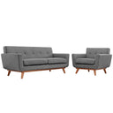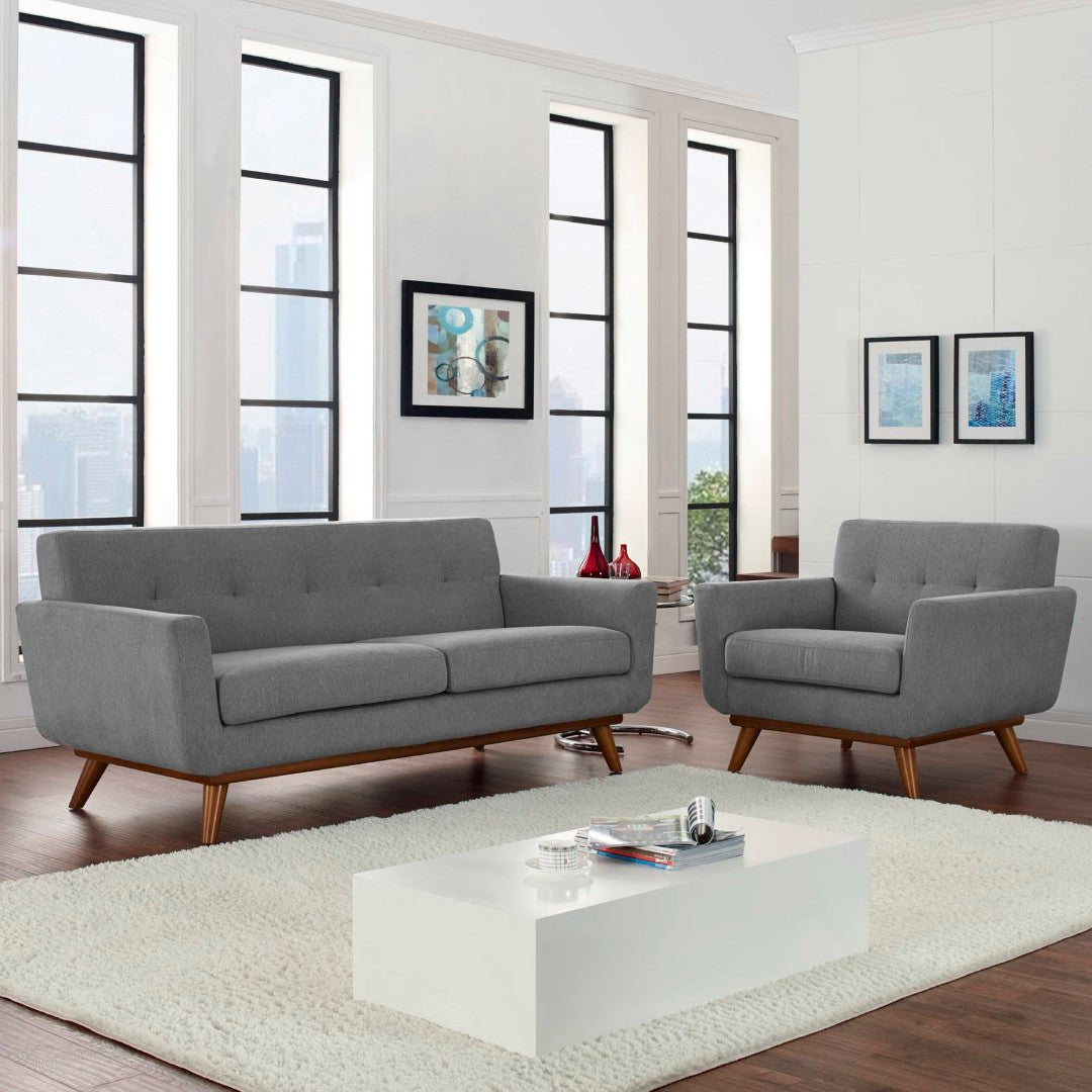 Sink into comfort and style with this inviting seating set that blends modern lines and soft, supportive cushions. Thoughtfully designed for everyday lounging or lively conversation, the set’s tufted detailing and warm cherry wood legs lend a polished, contemporary look while providing durable support for years of use.