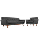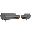 Sink into casual comfort with the Engage armchair and sofa set — a stylish, family-ready pairing that blends modern curves with plush seating. Thoughtful details like tufted accents and dual cushions invite lingering conversations, cozy reading, and everyday relaxation, while a sturdy rubberwood frame and cherry-finish legs provide lasting support and refined contrast.
