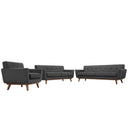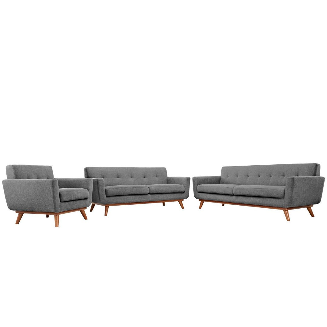 Create a warm, inviting seating area with this three-piece upholstered set that blends modern curves and classic tufting for everyday comfort and lasting style. The Engage collection offers deep, supportive cushions and a refined silhouette that suits living rooms, family rooms, or open-plan spaces—ideal for relaxing, entertaining, or casual conversation.