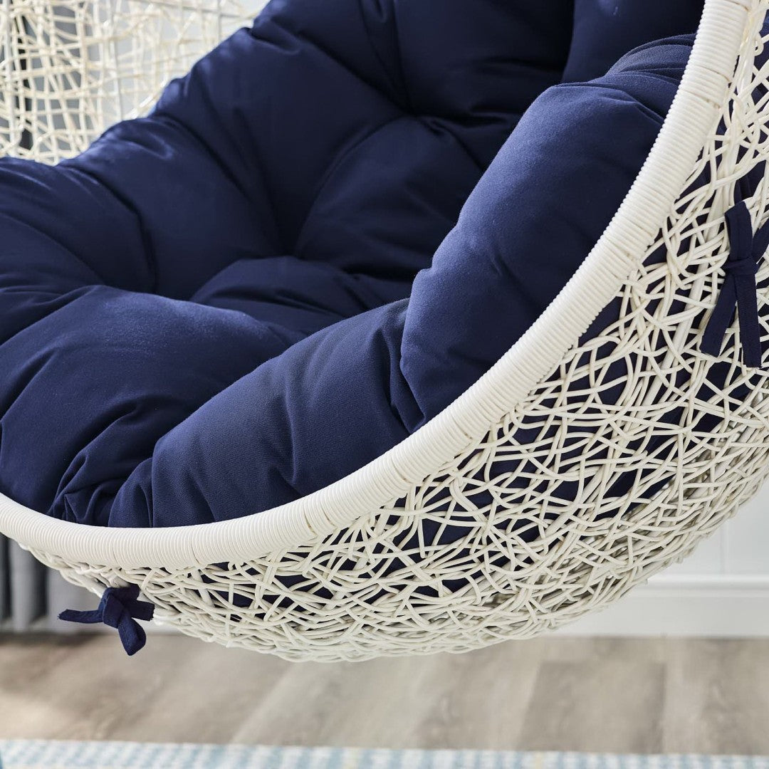 Drift into comfort with the Hide Swing Chair — a stylish, weather-ready hanging hammock that blends resort-worthy relaxation with everyday durability. Handcrafted synthetic rattan and a plush Sunbrella® cushion create a cozy, breathable nest, while the powder-coated steel frame and hanging chain ensure secure, gentle motion. Perfect for patios, porches, poolside retreats, or indoor lounge spaces, this swing chair elevates any setting with timeless design and low-maintenance performance.