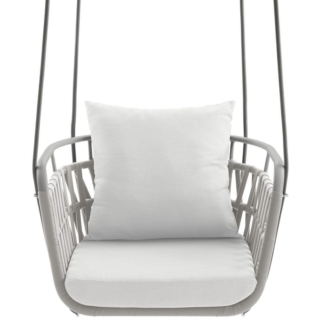 Relax and unwind in style with the Kaliah Outdoor Patio Swing Chair by Modway — a thoughtfully designed hanging seat that blends durable construction with cozy comfort. Its powder-coated aluminum frame and hand-woven polyester straps create an artisanal, weather-ready silhouette, while the plush, water-resistant cushions deliver all-day comfort. Ideal for porches, patios, or garden nooks, this hanging chair arrives ready to hang (assembly required) with heavy-duty ropes and a locking stainless-steel buckle for secure suspension.