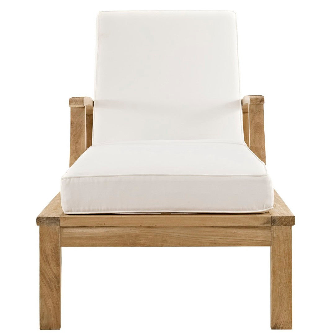 Experience relaxed, coastal sophistication with this solid teak outdoor chaise—crafted for comfort, durability, and timeless style. Natural teak resists weathering and ages gracefully, while the modern silhouette and plush all‑weather cushions create a welcoming lounge perfect for afternoons by the pool or evenings on the patio.