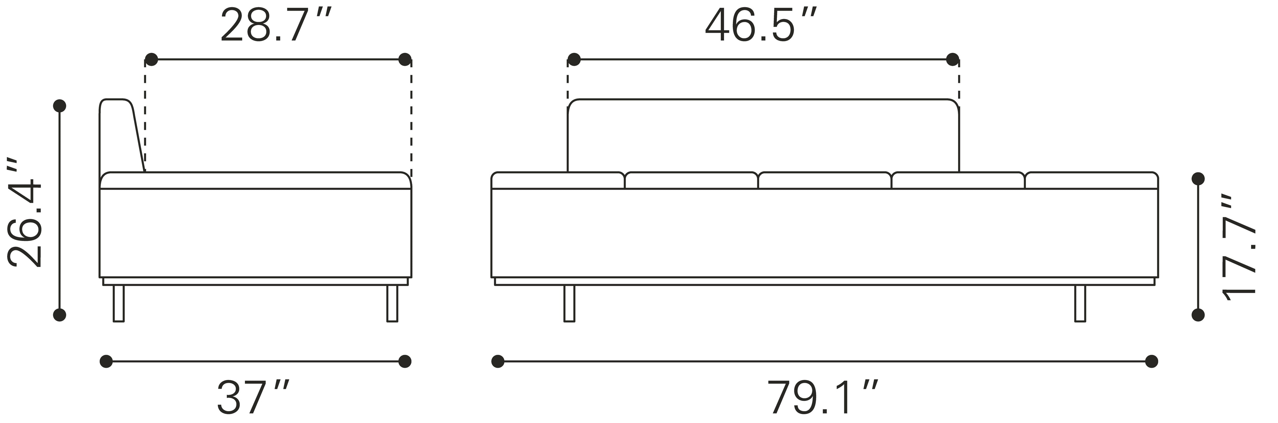 Seat Dimensions: 78.7" SW x 28.7" SD x 17.7" SH