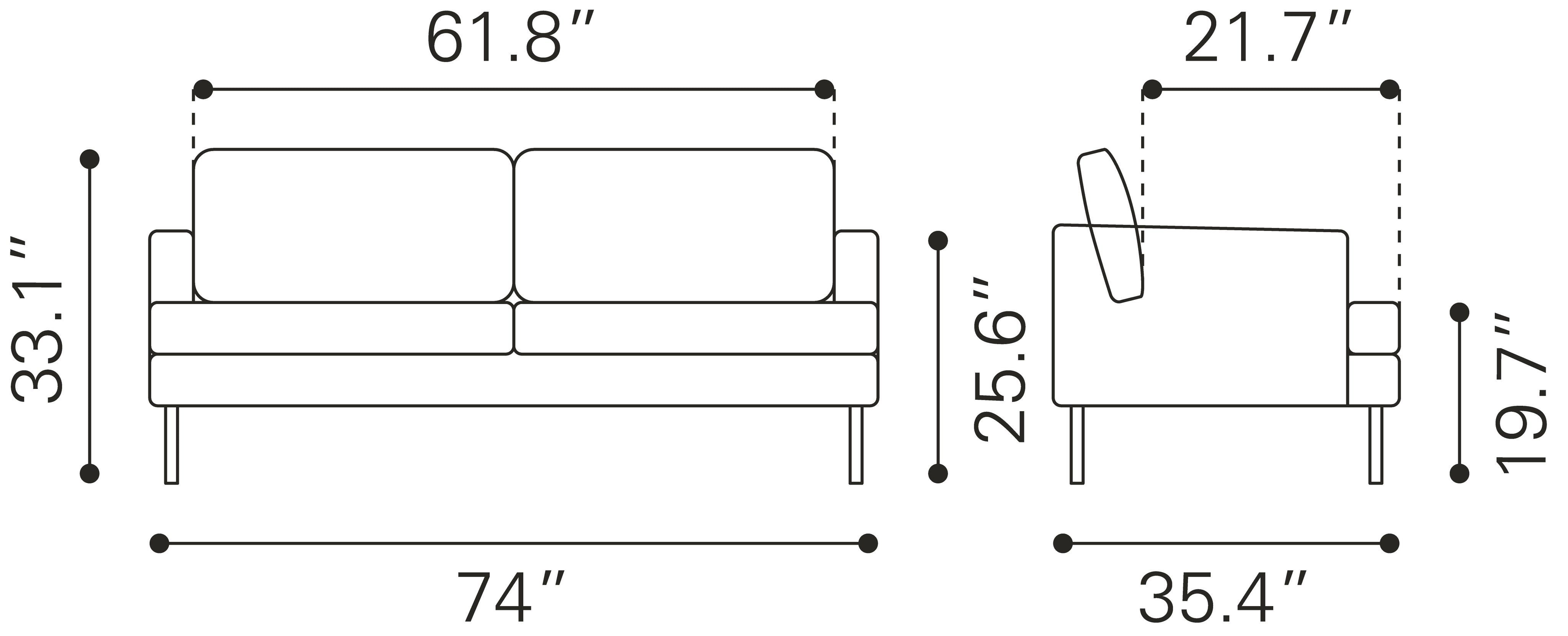 Seat Dimensions: 61.8" SW x 21.7" SD x 19.7" SH