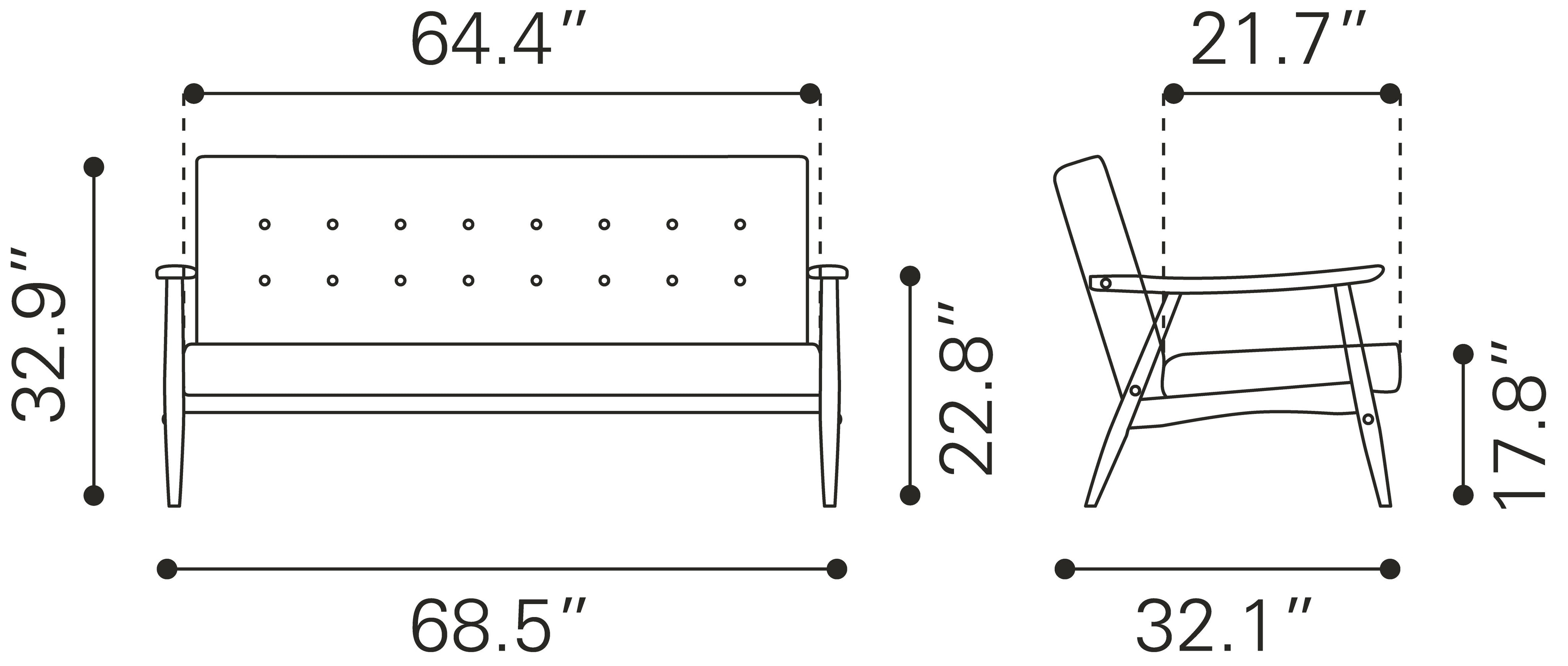 Seat Dimensions: 64.4" SW x 21.7" SD x 17.7" SH