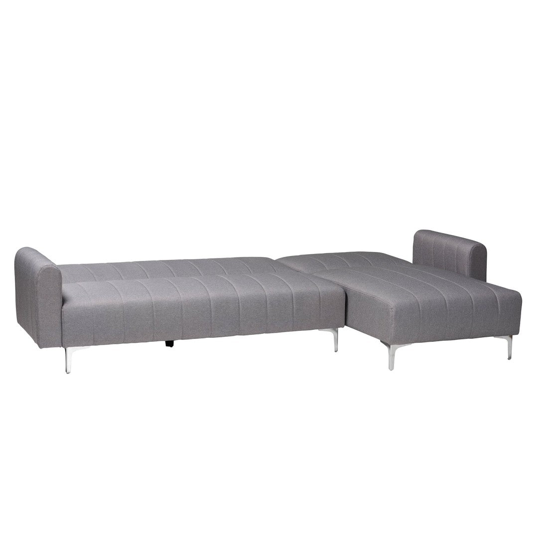 Experience modern comfort and versatile design with the Lanoma convertible sleeper sofa. Beautifully upholstered in slate grey fabric with channel-tufted cushions and cozy accent pillows, this contemporary sectional transforms effortlessly between a sofa, reclined lounge, and full bed using a durable click-clack mechanism. Designed with a sturdy tropical hardwood and engineered wood frame, multi-layer foam padding, and a refined retro-modern silhouette, Lanoma delivers both everyday relaxation and guest-ready functionality.
