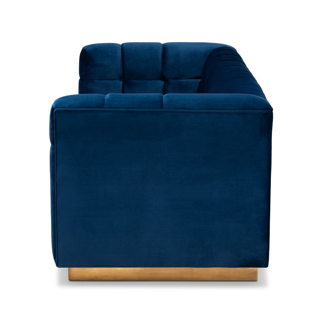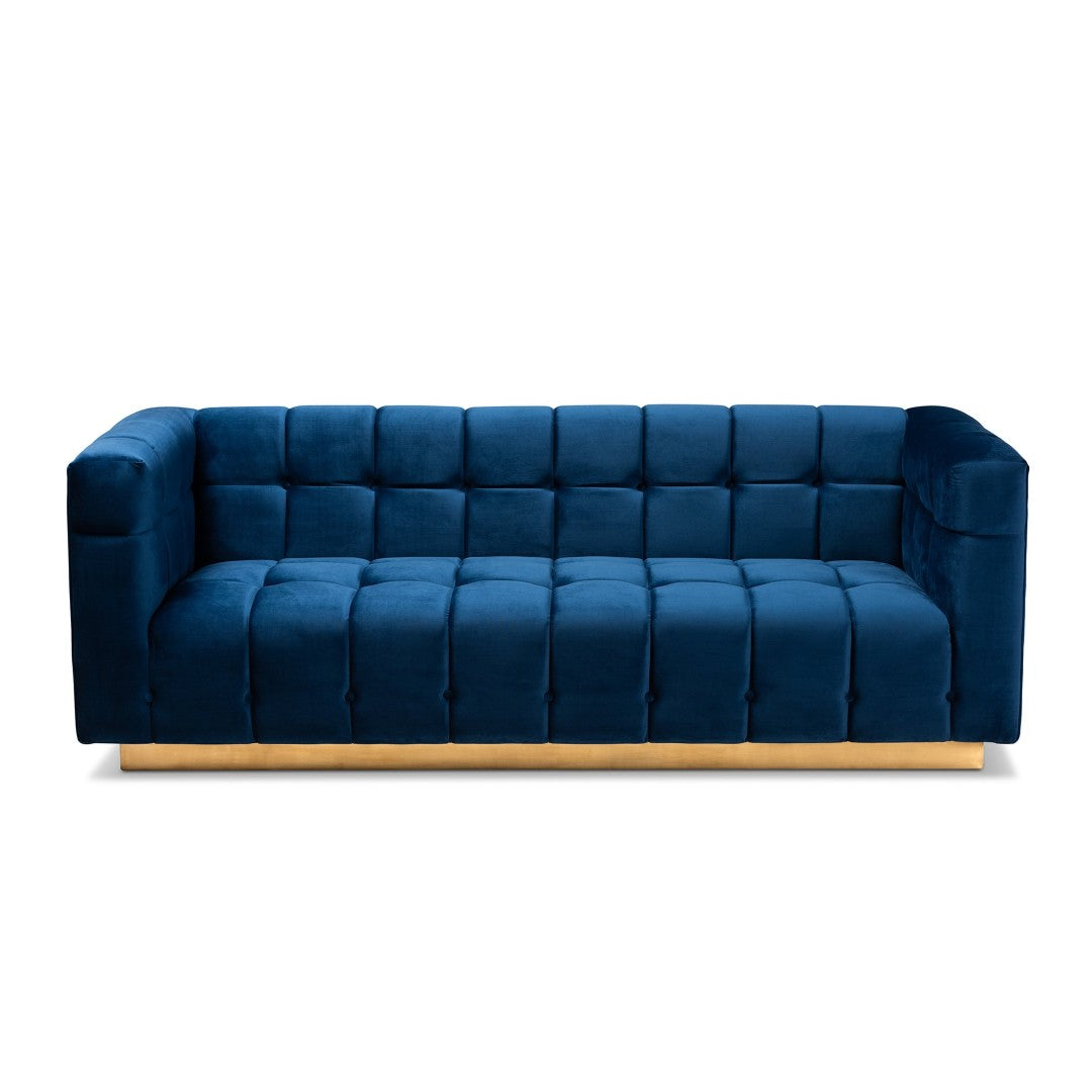 Sink into glamorous comfort with the Loreto sofa — a statement piece that combines sumptuous navy velvet, elegant tufting, and a brushed gold base to elevate any living space. Designed for both style and everyday use, this fully assembled sofa offers plush foam cushioning, refined construction, and a luxurious silhouette that complements modern and classic interiors alike.