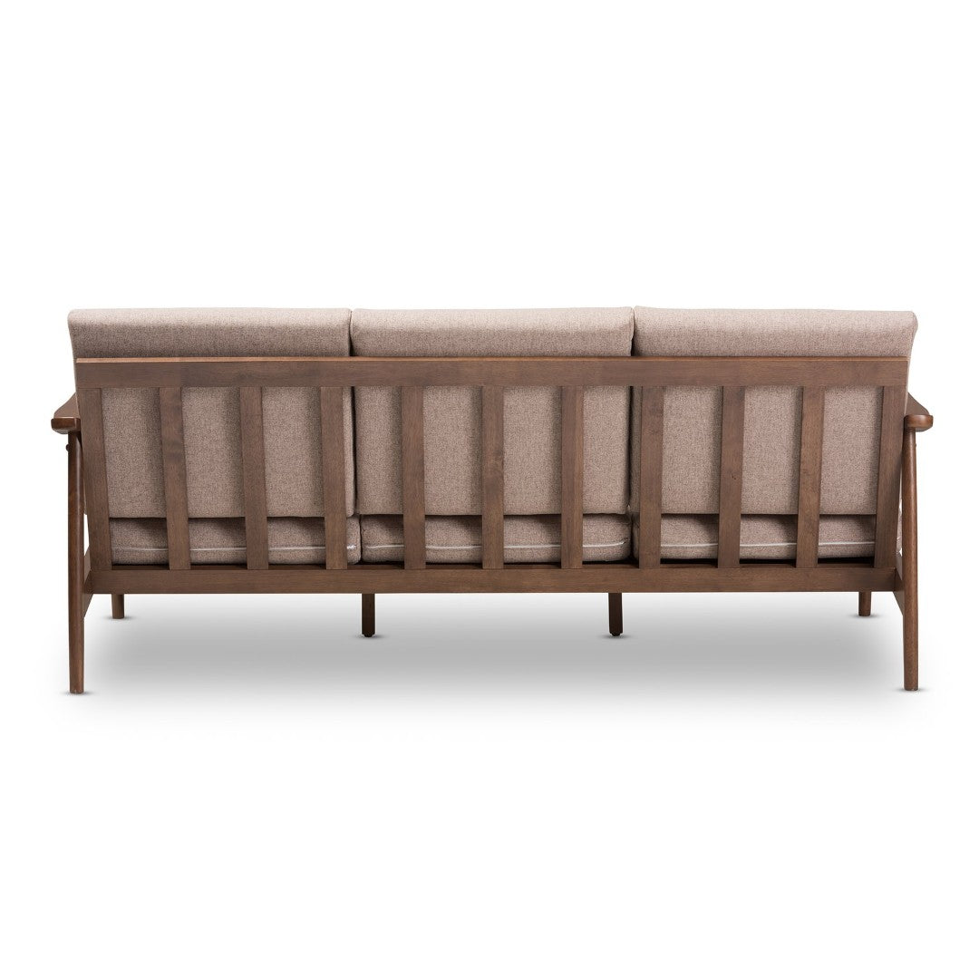 Unwind in style with the Venza 3-seater sofa — a mid-century modern piece that blends vintage-inspired lines with contemporary comfort. Built on a solid rubberwood frame and finished in dark walnut, its clean paneled back, sloping arms and splayed legs create a relaxed yet refined look that suits living rooms, bedrooms, offices, or waiting areas. Soft, resilient light-brown polyester cushions provide plush seating while maintaining long-lasting appearance; cushions are removable for easy care. Made in Malaysia, the Venza offers durable construction and understated elegance for everyday living.