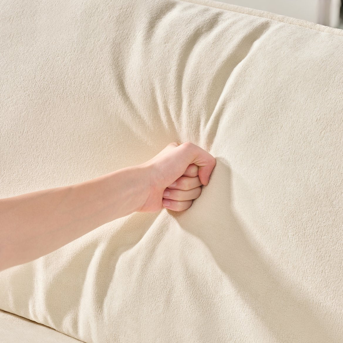 Sink into luxurious comfort with this deep-seated sofa—designed for relaxation and style in bedrooms, living rooms, apartments, offices, or dorms. Upholstered in high-quality cloud velvet polyester blend, it combines a soft, skin-friendly feel with a refined, neutral aesthetic that elevates any interior. The generous seat depth and resilient cushioning provide exceptional support and shape retention for long-lasting comfort.