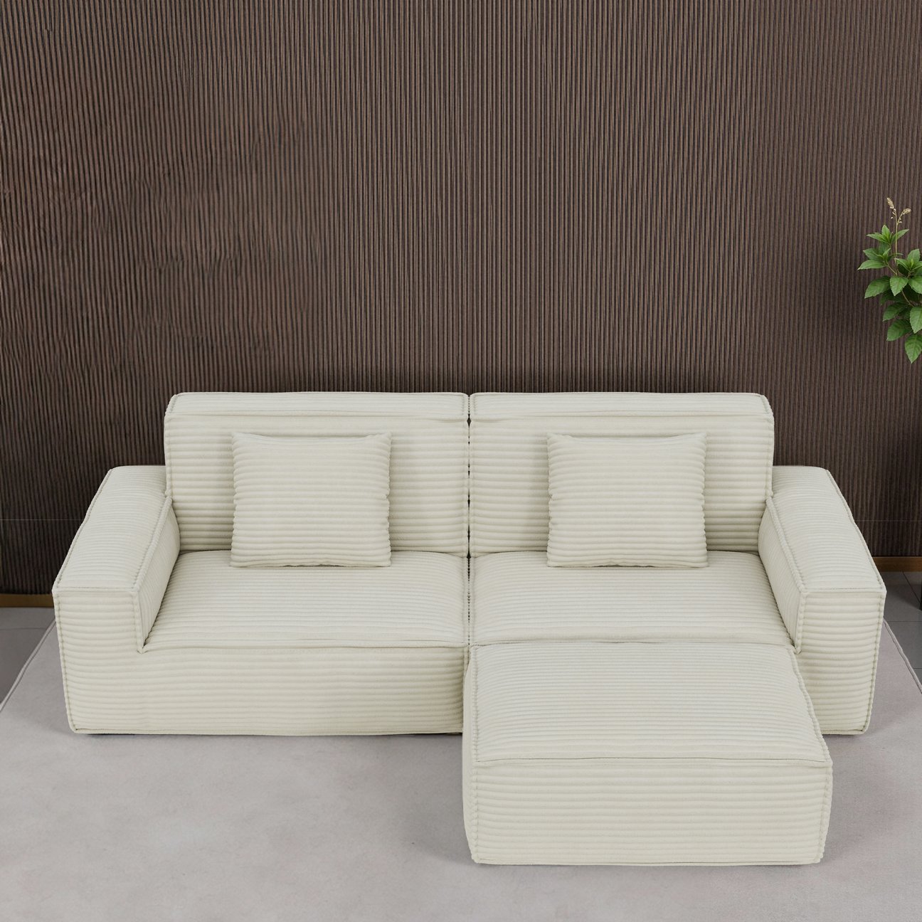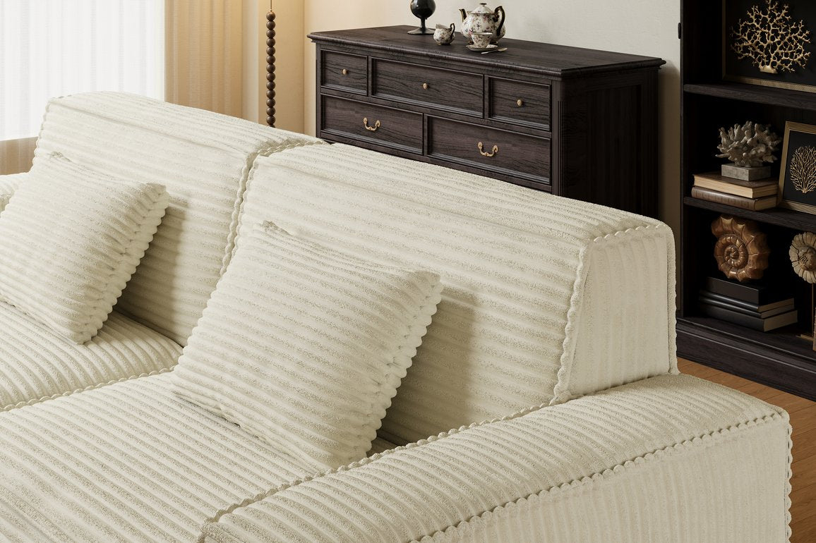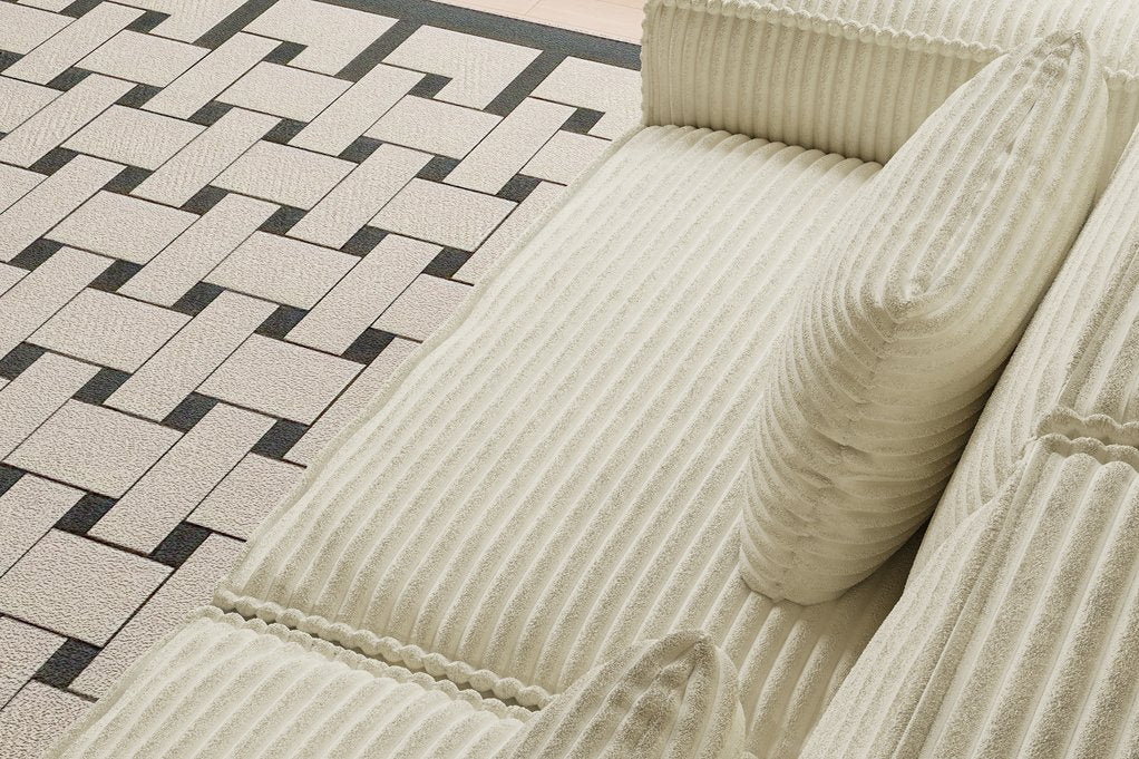 Sink into spacious, modern comfort with this generously sized striped compression sofa—designed for everyday relaxation and effortless setup. Upholstered in durable beige striped fabric and filled with resilient full-sponge foam, it combines plush softness, supportive high-rebound seating, and a sleek minimalist aesthetic that complements living rooms, bedrooms, apartments, and guest spaces.
