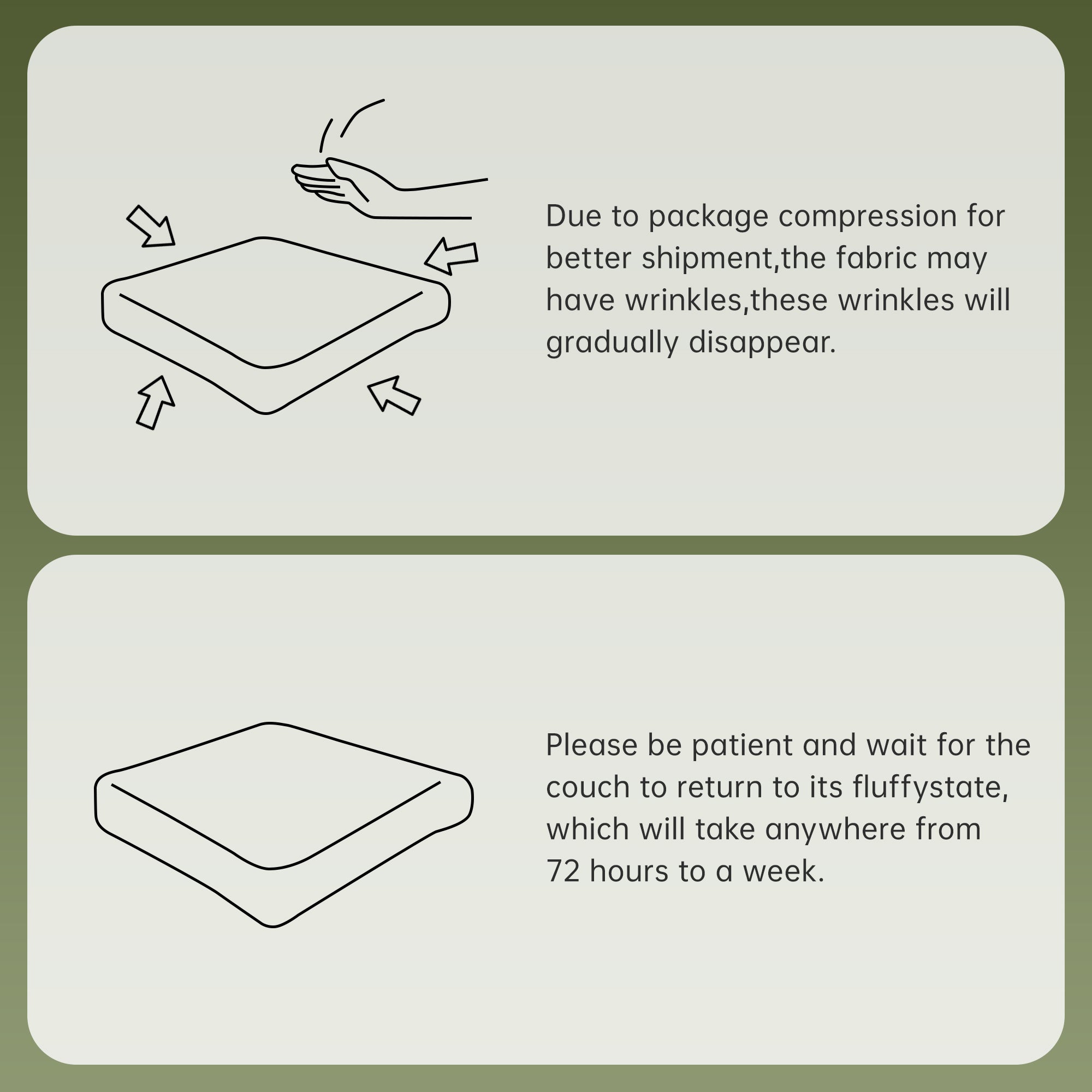 - No Assembly: Ships ready to use — cushions and pillows are vacuum-packed for transport and typically expand to full shape within 2–7 days after unpacking.