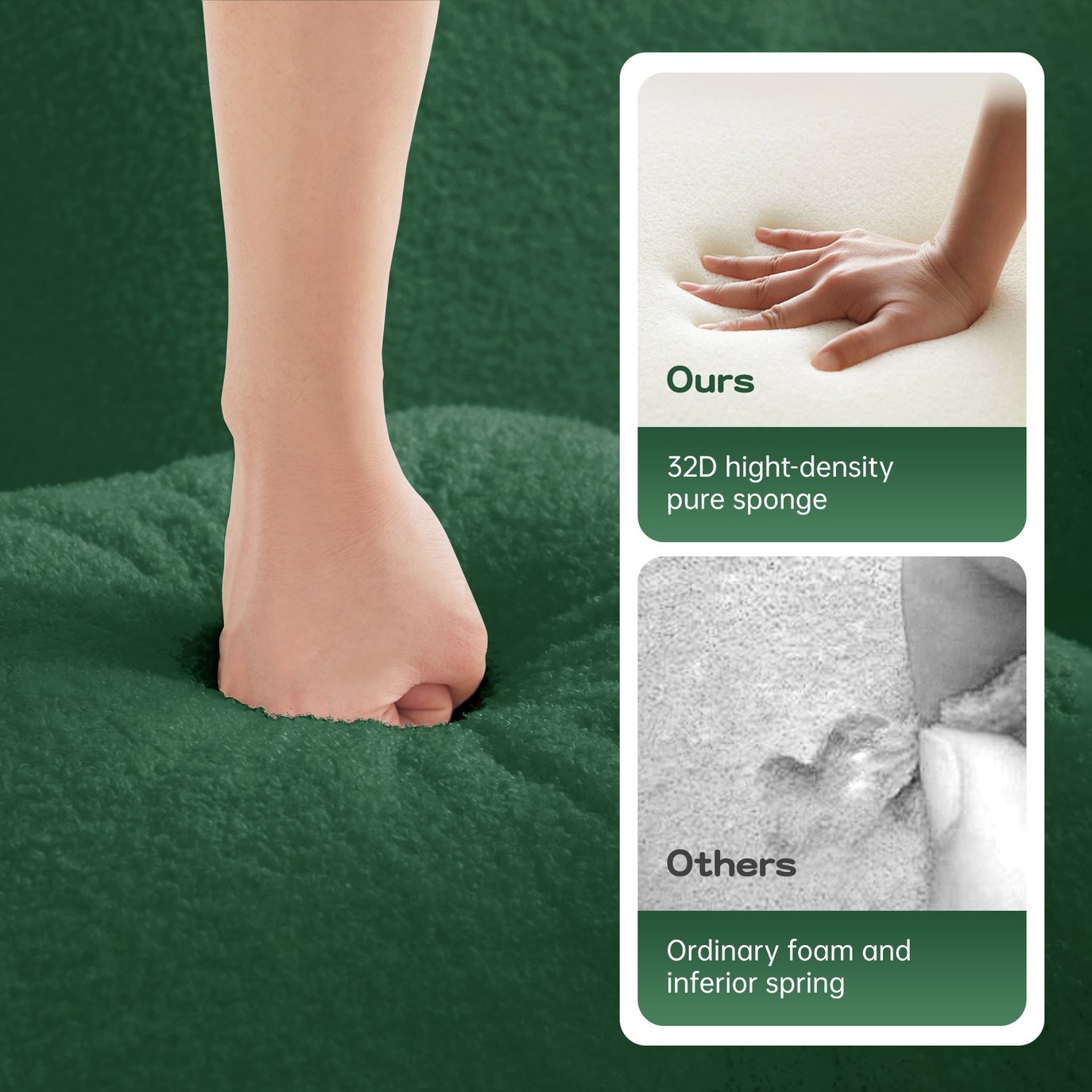 - Ergonomic Design:This sofa features an ergonomic curved design, with a backrest that can be freely adjusted to multiple angles. The seat is padded with 32D high-resilience sponge, which offers quick rebound and excellent durability. Paired with the soft and breathable teddy fleece fabric, it delivers a cloud-like comfortable experience. It reduces fatigue from prolonged sitting, turning every lean into a moment of deep physical and mental relaxation.