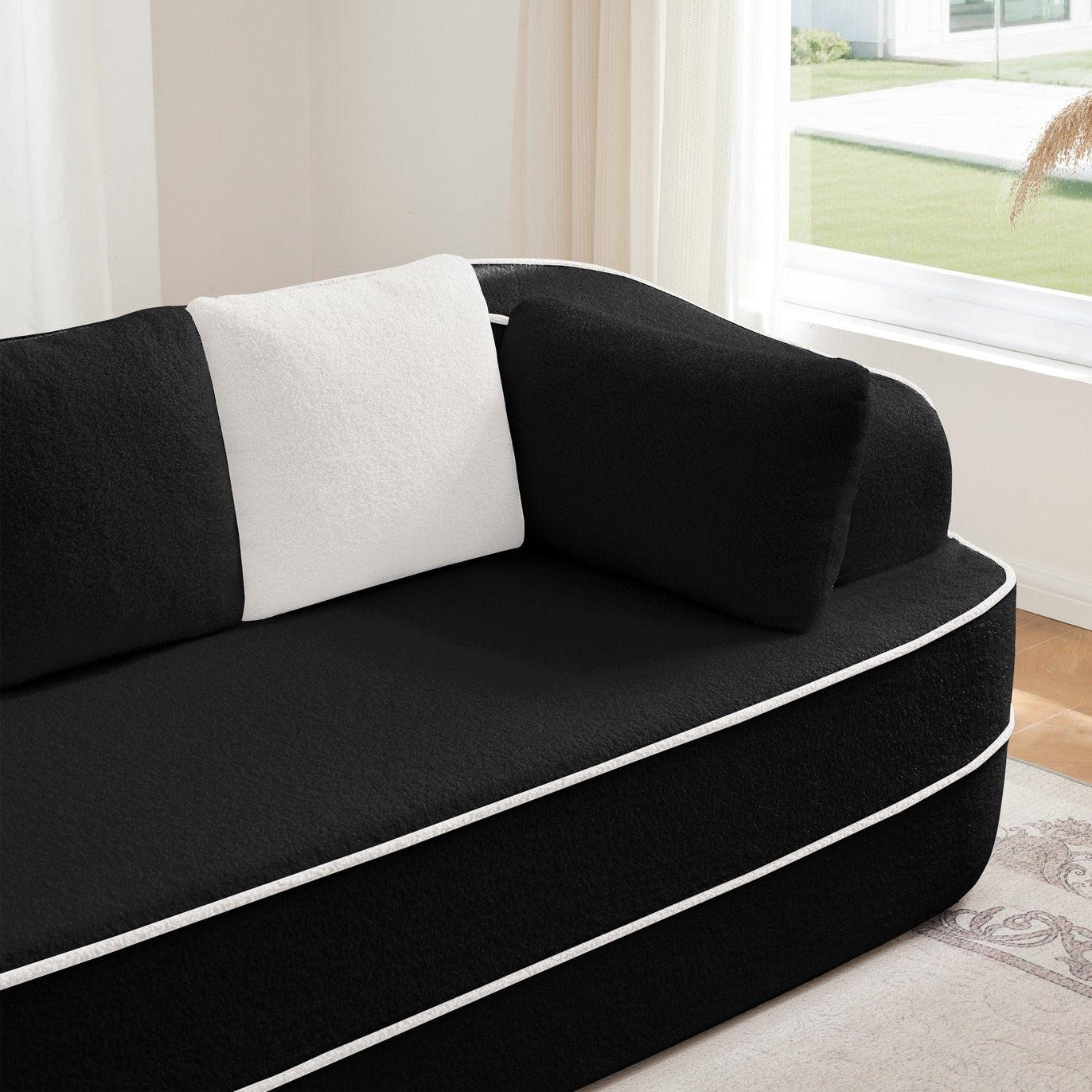 - Premium Teddy Velvet Fabric: Immerse yourself in the soft teddy velvet fabric, with a touch as fluffy and light as a cloud. This understatedly luxurious material combines softness and warmth for lasting comfort. Its unique texture and gentle sheen not only make the sofa stand out, but also blend comfort with serene elegance. The intricate textured structure radiates visual warmth, creating a luxurious, soft, and utterly inviting seating and lounging experience.