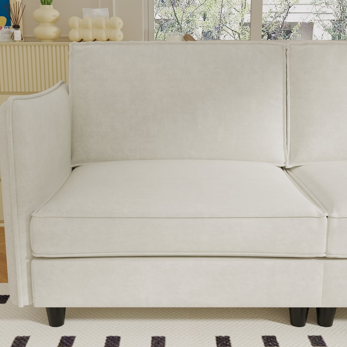 Enjoy roomy, modern comfort with this versatile L-shaped 3-seater sofa and movable ottoman—designed for living rooms, apartments, and offices that need stylish seating without sacrificing durability. Upholstered in breathable, skin-friendly fabric with supportive pocket-spring cushions, this sofa offers long-lasting comfort and a customizable layout to suit your space.