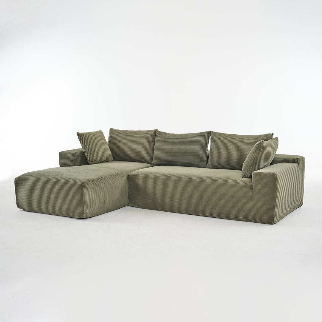 - MINIMALIST, MODULAR DESIGN - The sleek, minimalist design blends seamlessly into any decor, while modular components allow you to easily rearrange the sofa to fit your space. Whether in a living room, apartment, or guest room, the sofa can be easily moved and reconfigured to suit your needs,LUXURY, WRINKLE-RESISTANT CORDROY - This sectional sofa is wrapped in premium, wrinkle-resistant corduroy, combining soft, luxurious comfort with durability.