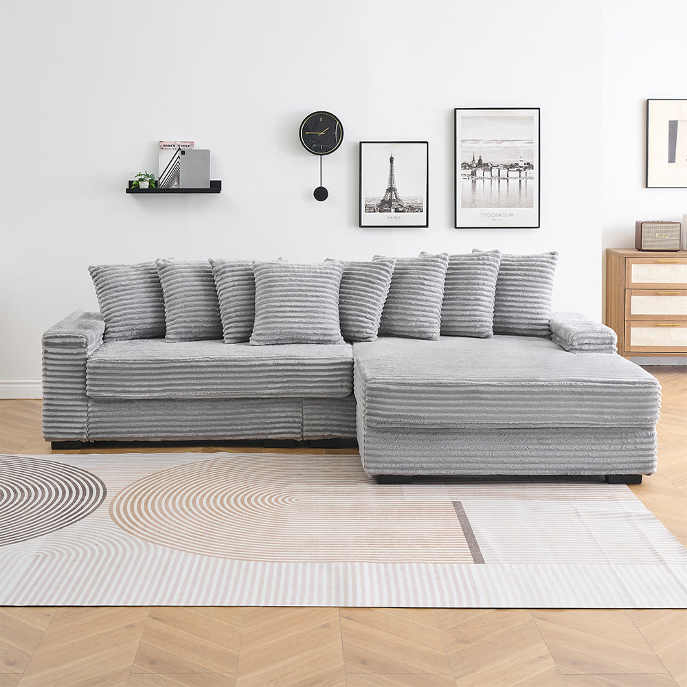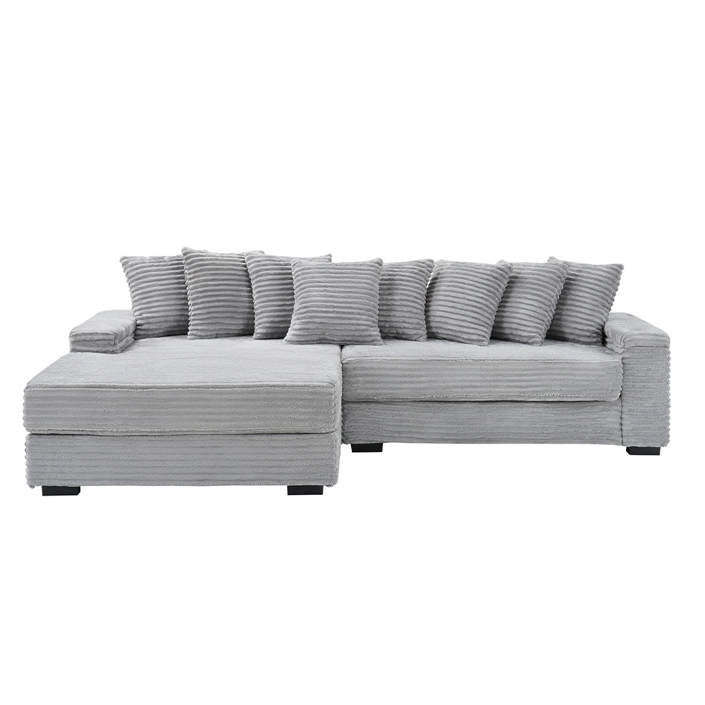 Invite cozy elegance into your living room, bedroom, or office with this stylish flannelette sofa — a warm, sheltering centerpiece designed for comfort and everyday living. Upholstered in soft corduroy and accompanied by eight plush throw pillows, it balances refined looks with durable construction: a solid wood frame, sponge-filled cushions, and resilient spring seat structure deliver lasting support for family gatherings or quiet relaxation.