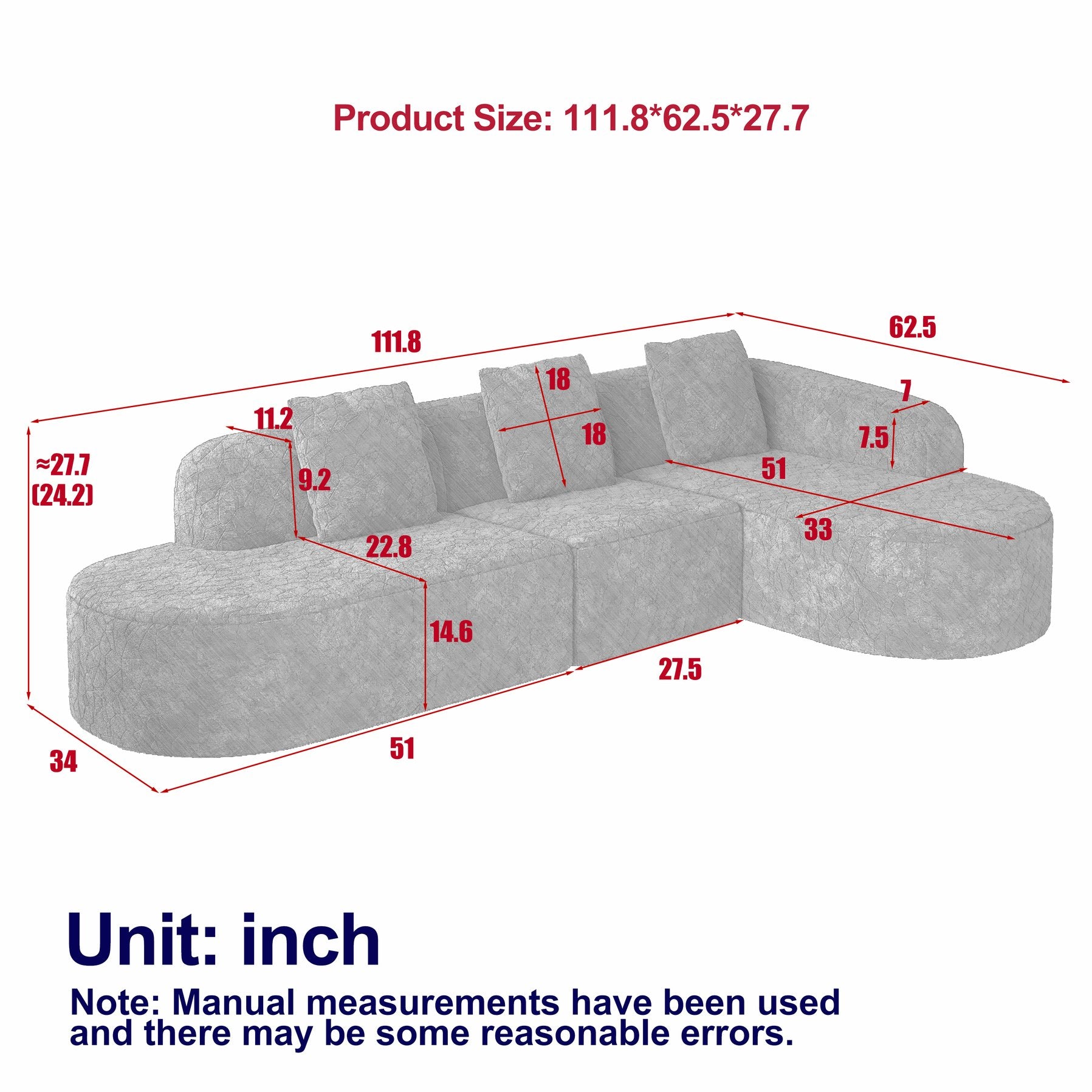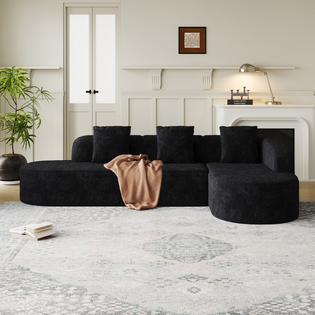 Bring contemporary comfort and sculptural style to your living room with this L-shaped curved modular sofa. Designed for lounging and socializing, it combines a luxurious lychee-textured long-pile polyester upholstery with a smooth, sweeping silhouette and three supportive pillows. The modular layout and extra-wide chaise allow flexible arrangements to suit open-plan living or cozy corners, while premium high-density foam provides plush support after a short 72-hour rebound period.