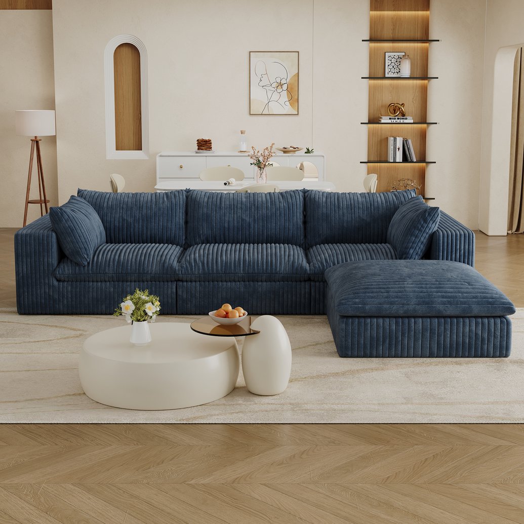 Sink into cloud-like comfort with this expansive corduroy sofa—designed for deep seating, flexible layouts, and luxurious relaxation. Its plush, feather-filled cushions and double-layer construction create an inviting lounge experience ideal for living rooms, bedrooms, apartments, or conference areas. Engineered for easy delivery and setup with no assembly required, this modular piece adapts to your space and style while offering durable, low-maintenance upholstery.