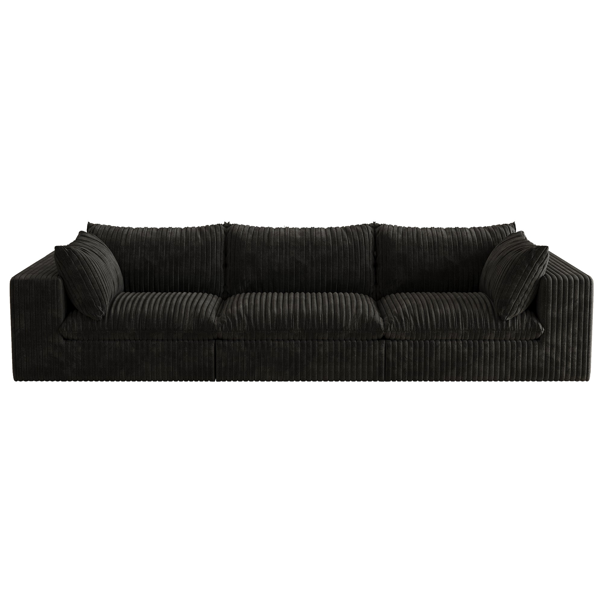 Sink into cloud-like comfort with this expansive modular sofa—designed for lounging, entertaining, and flexible living. Wrapped in soft corduroy fabric and filled with plush feather and sponge layers, it delivers a deep, inviting seat and a luxurious feel. Its no-assembly, double-layer construction and movable modules let you customize the layout to fit a living room, bedroom, apartment, or conference area while maintaining effortless style in classic black.