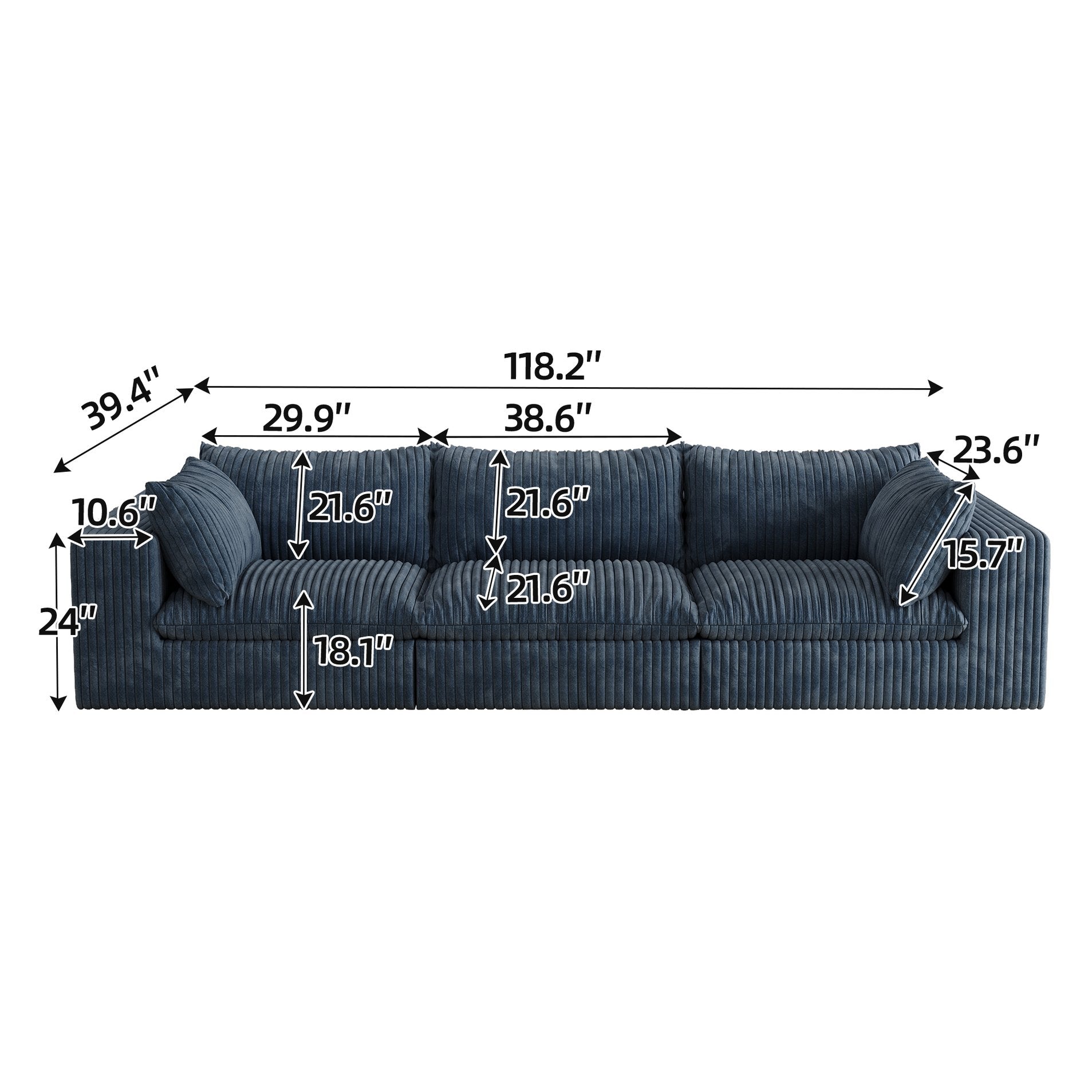Sink into cloud-like comfort with this expansive modular sofa, designed to blend luxurious softness with practical versatility. Upholstered in plush corduroy fabric and filled with feather and high-density sponge support, it creates a deep, inviting seat ideal for lounging, entertaining, or relaxing in living rooms, bedrooms, conference rooms, and apartments. Its no-assembly, DIY combination format lets you reconfigure sections easily to match your space and style, while the double-layer design and removable cushions simplify cleaning and maintenance.