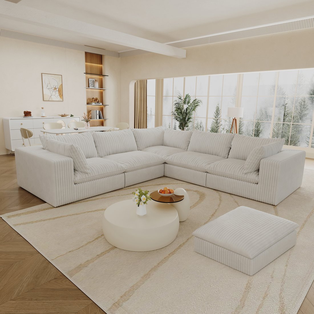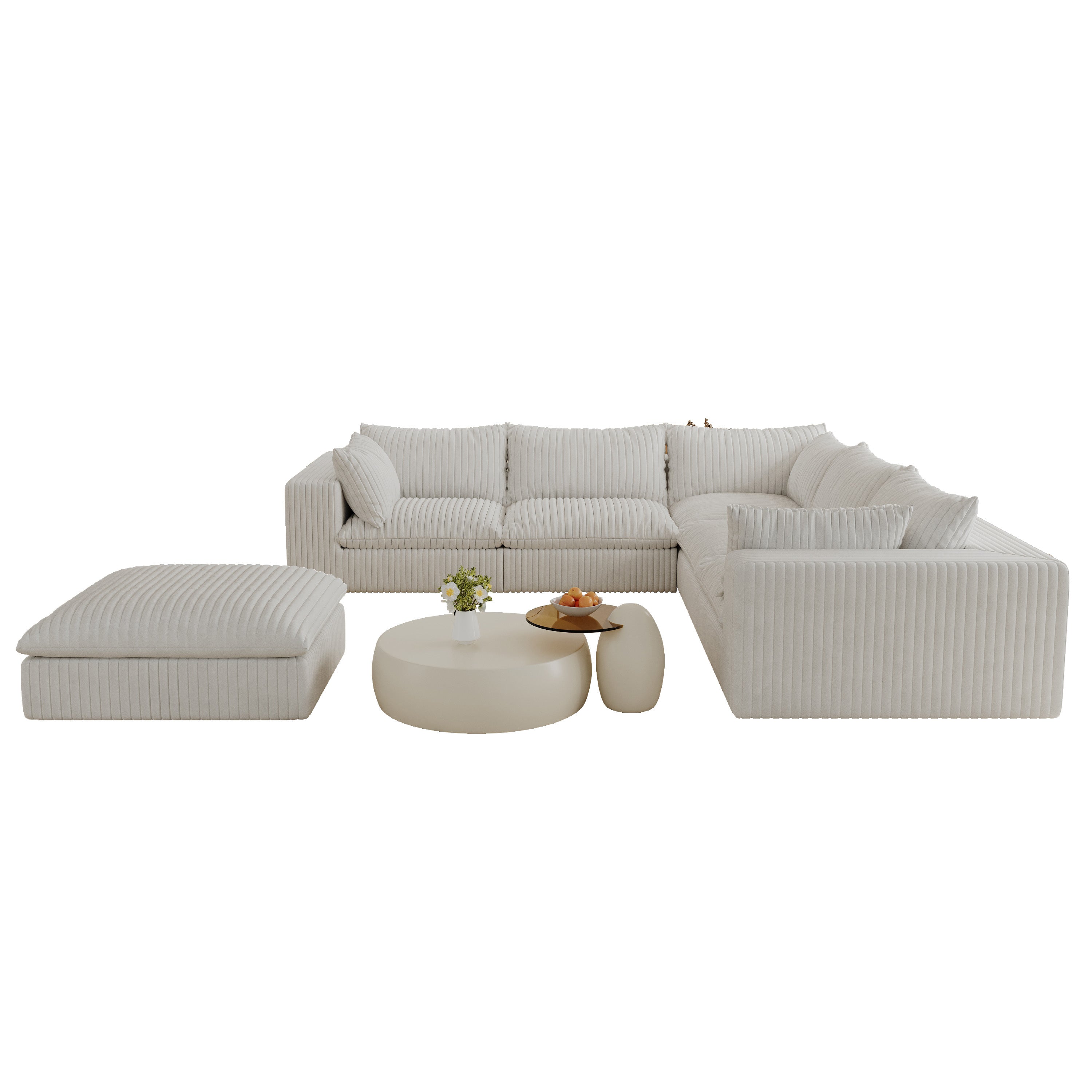 Sink into cloud-like comfort with this expansive modular sofa — designed for lounging, entertaining, and flexible living. Upholstered in soft white corduroy, the double-layer, feather-filled seating and full sponge support deliver plush, supportive comfort while the no-assembly, DIY combination pieces let you arrange the sofa to suit living rooms, bedrooms, conference spaces, or apartments.