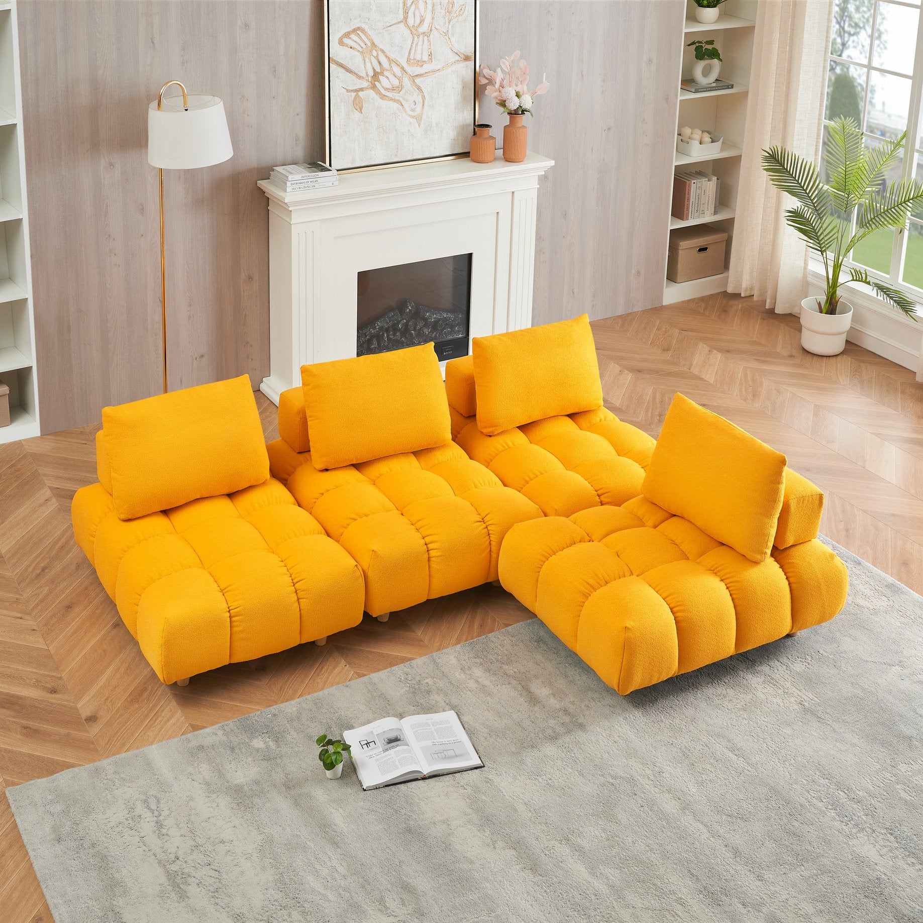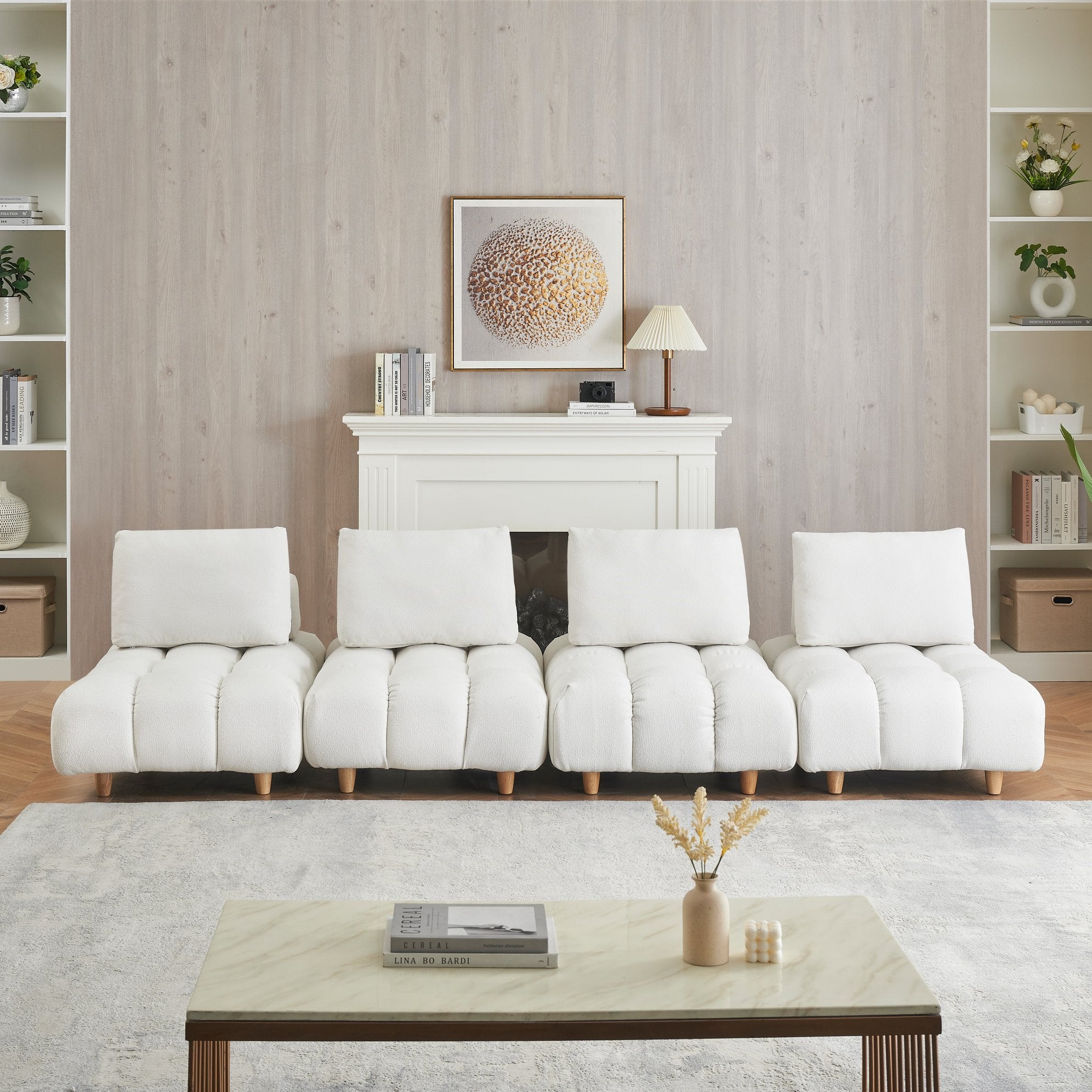 This plush teddy-fabric sofa combines cozy comfort and modern style to elevate your apartment, office, or living room. Designed to seat up to four people, it pairs a sturdy solid-wood frame with spring-supported cushions and soft sponge padding for long-lasting comfort and support. Neutral beige (also available in yellow and gray) and burlywood solid-wood legs create a versatile look that complements contemporary and casual interiors.