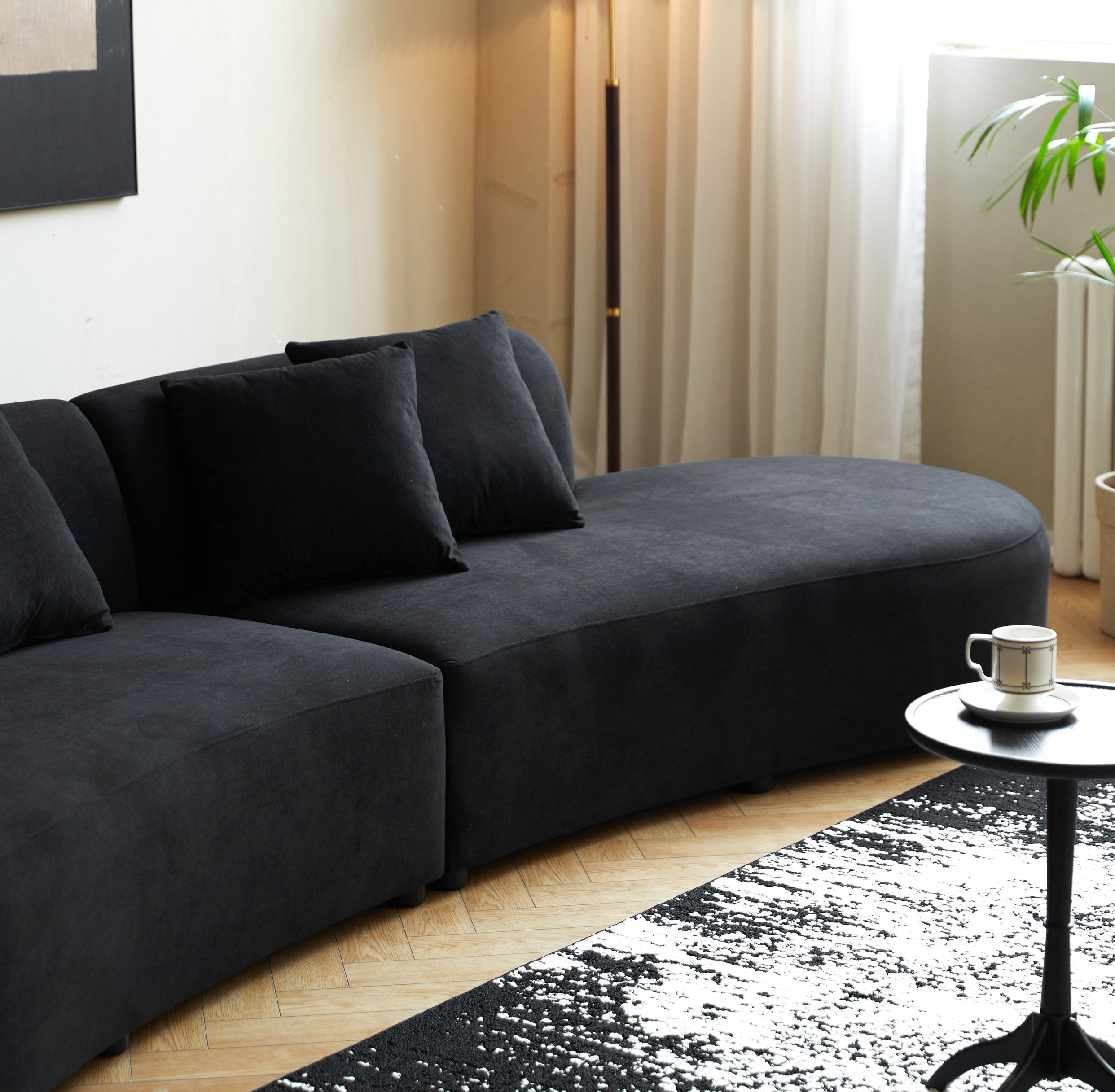 - Modern Minimalist Aesthetic: Sleek black finish and clean lines pair well with contemporary, minimalist, or transitional decor; includes matching throw pillows.