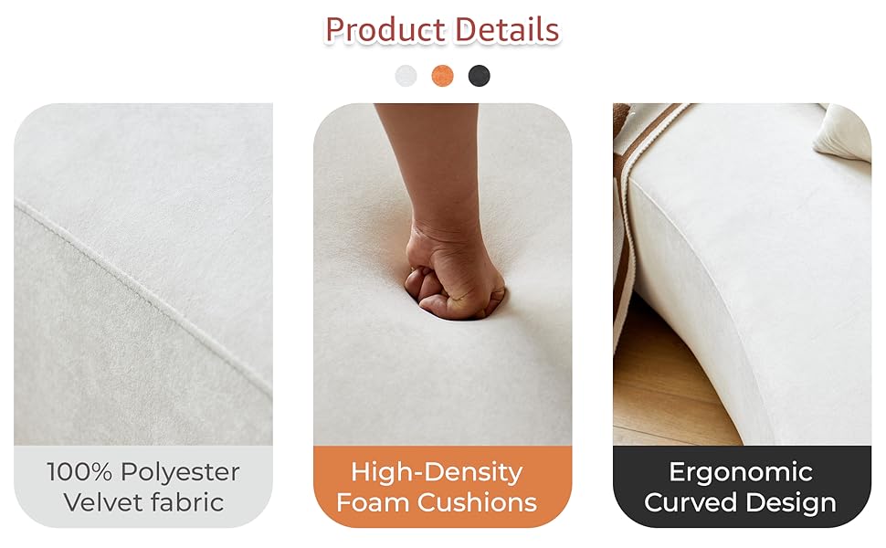- LUXURIOUS VELVET UPHOLSTERY: Soft to the touch, this curved couch is made of 100% polyester velvet fabric, adding a touch of elegance and comfort to your living room, office, or apartment