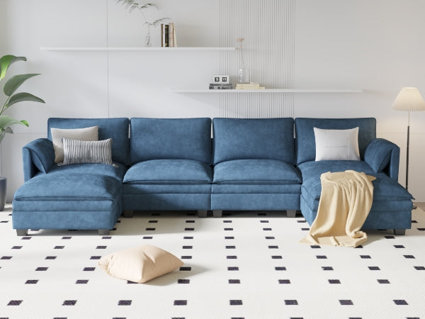Bring modern comfort and flexible seating to large living spaces with this U-shaped 6-seater sofa and movable ottoman. Upholstered in breathable, skin-friendly fabric with pocket-spring cushions and high-density foam, this sofa is designed for long-lasting comfort, everyday durability, and customizable layouts—ideal for living rooms, apartments, or offices seeking both style and function.