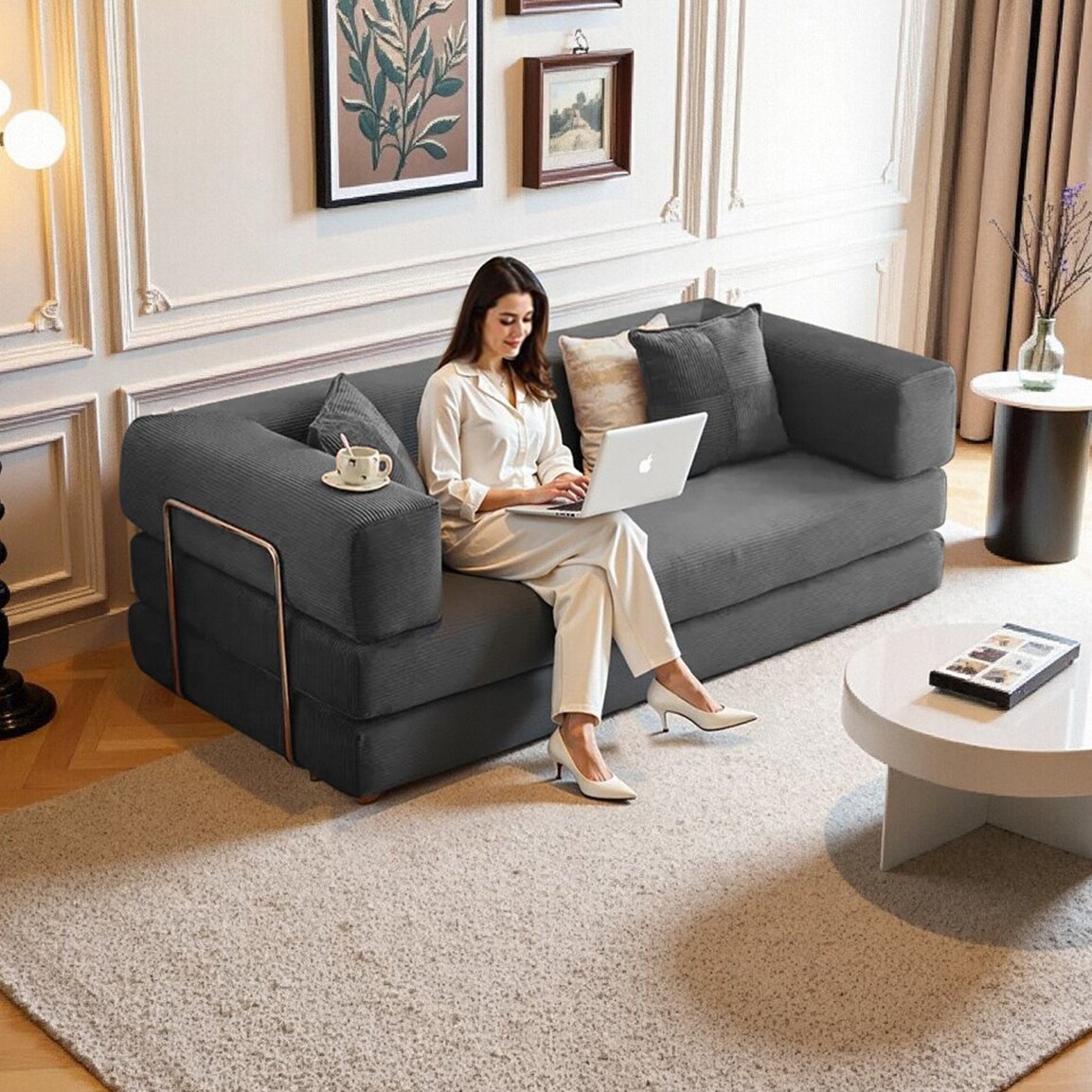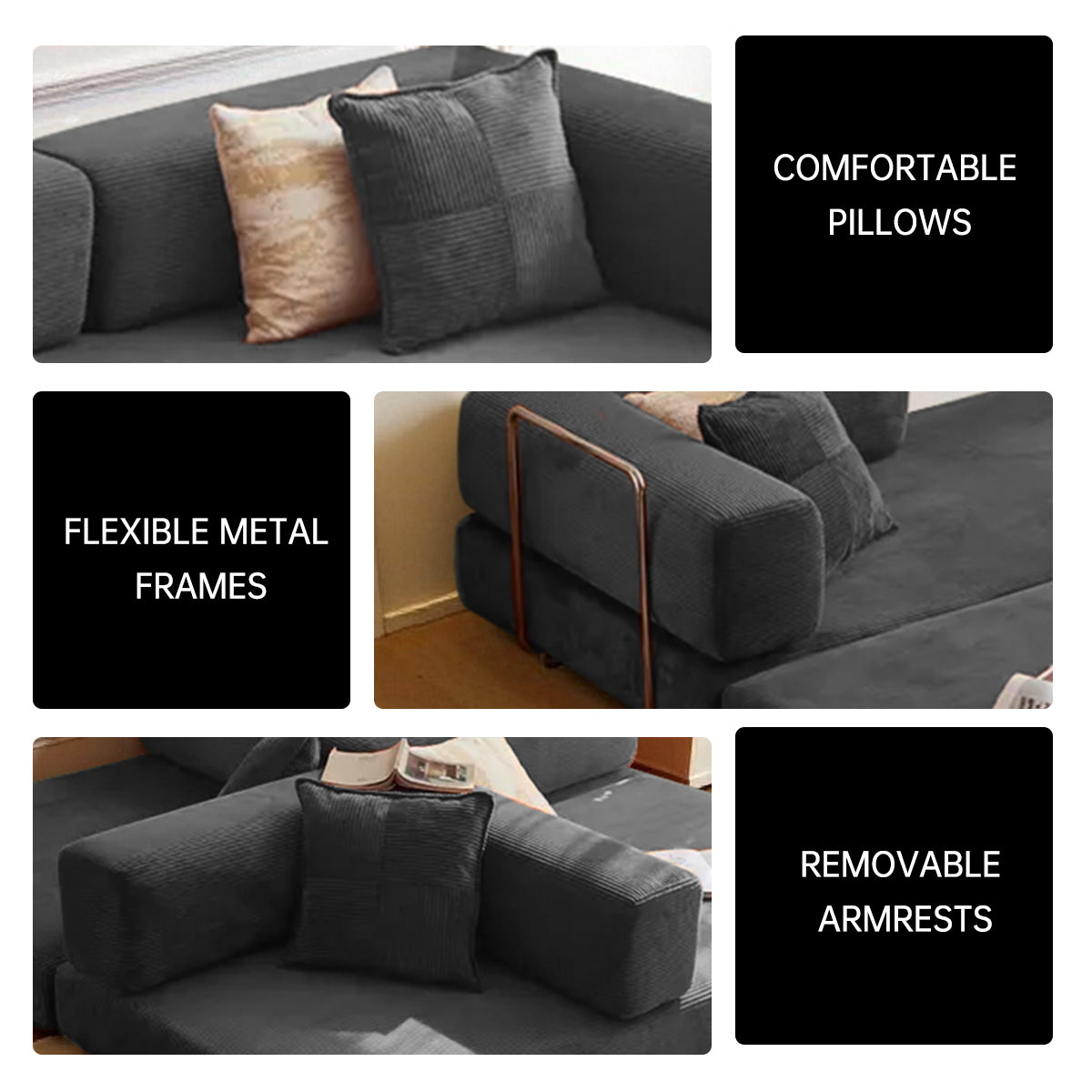 - Premium Comfort: Upholstered in soft, breathable Small Streak Corduroy fabric, this convertible sofa bed features high-density foam that effectively alleviates pressure while providing robust support. The accompanying plush pillows enhance your lounging experience, ensuring relaxation like never before.