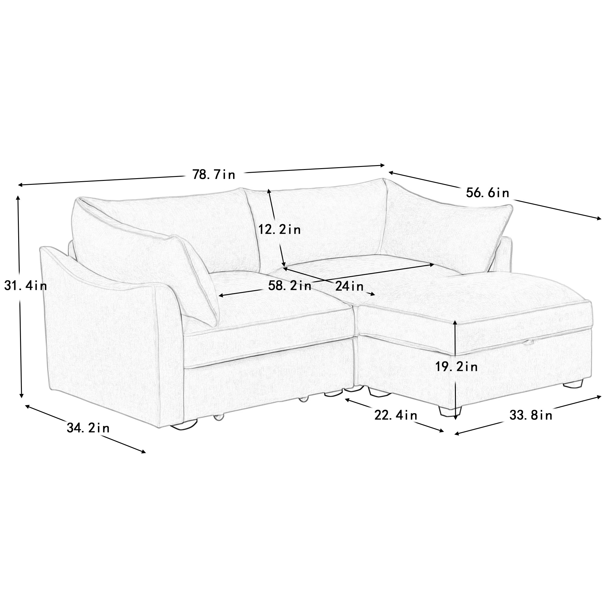 Bring comfort, style, and smart storage to your living space with this wheat-colored chenille 2-seater sofa and movable storage footstool. Thoughtfully designed with crescent-shaped armrests and wraparound back and arm cushions, it delivers a cozy, contemporary look while maximizing usability through multiple hidden storage compartments—perfect for compact homes or anyone who values tidy, elegant interiors.
