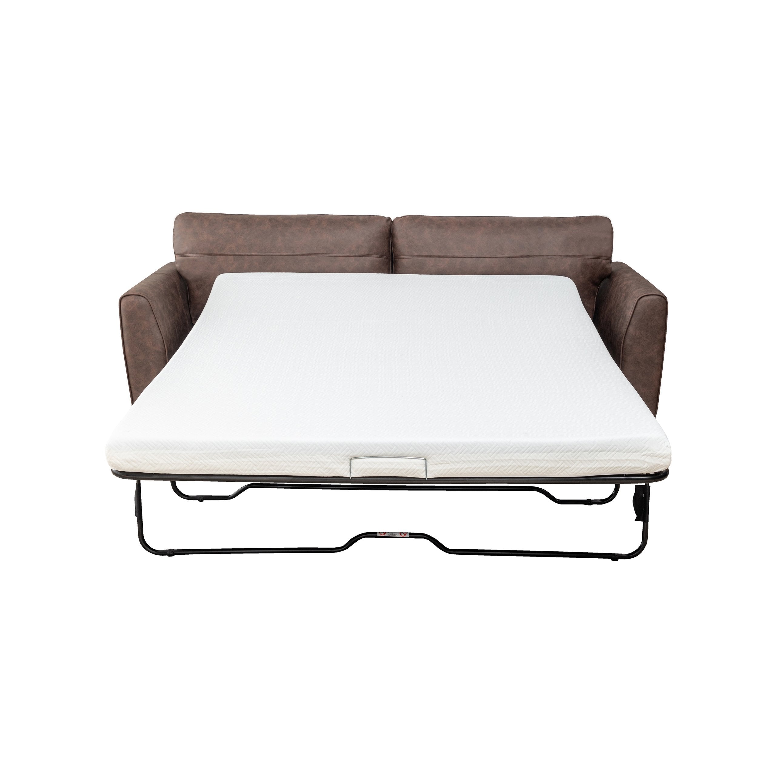 Enjoy versatile comfort and mid-century style with this compact 2-seater convertible sofa bed. Upholstered in easy-care faux leather and supported by a sturdy wooden frame, it transitions smoothly from a cozy sofa to a queen-size sleep surface—ideal for small living rooms, studio apartments, or guest-ready spaces. The warm brown finish and retro-modern silhouette complement a range of interiors while offering durable, low-maintenance performance.