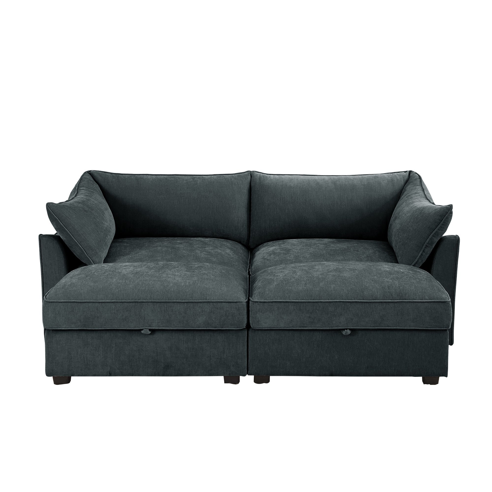 - Storage: Pull-out storage drawer beneath each seat plus hidden storage inside both movable ottomans—ideal for blankets, magazines, remotes, and toys.