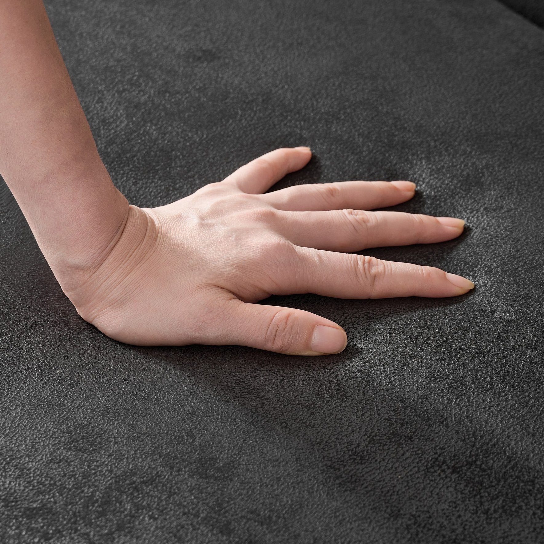 - Luxury That LastsWrapped in durable tech fabric (Leathaire), this sofa resists stains and wear while feeling smooth to the touch. The wooden frame and solid legs ensure stability, holding up to 450 lbs with ease.