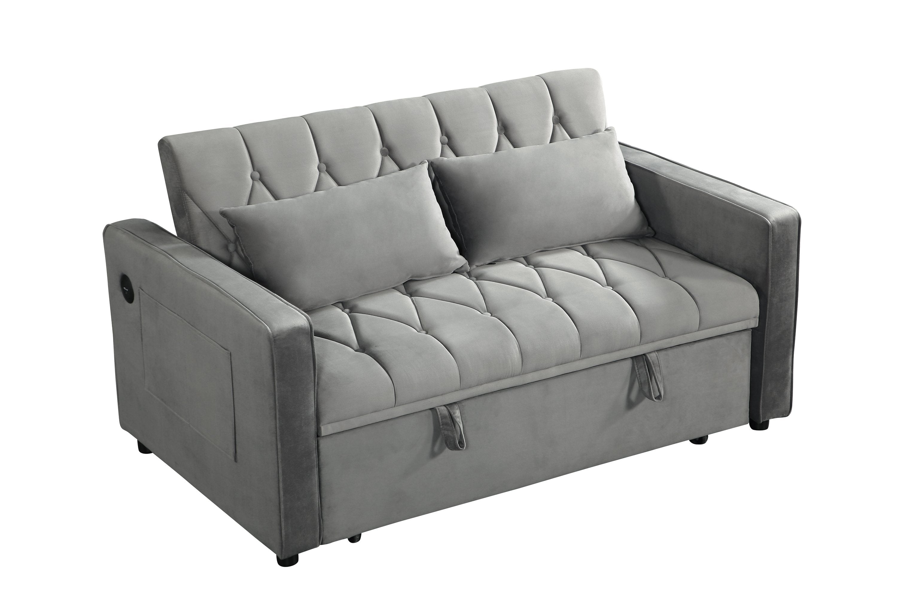 A versatile and space-saving 3-in-1 sleeper sofa designed for small homes, studios, dorms, or guest rooms. Upholstered in durable gray fabric, this compact futon-style loveseat easily converts between a comfortable sofa, a chaise lounge, and a full sleeping surface—making it a practical and stylish solution for everyday seating and overnight guests.