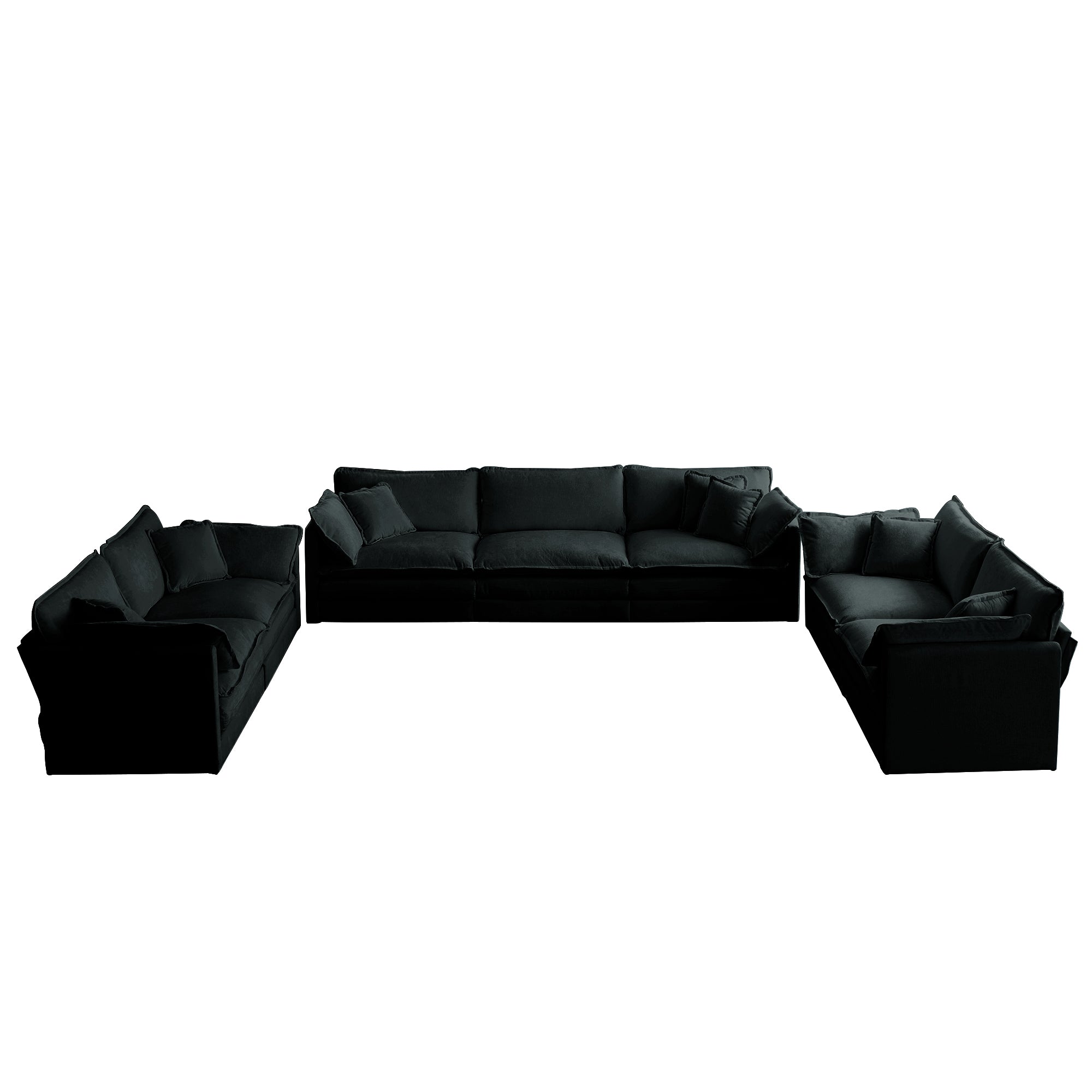 Transform your living space with this versatile 3-piece oversized sofa set, designed for comfort, durability, and flexible layouts. Upholstered in breathable black chenille and built on a solid wood frame, the set combines plush seating with modern styling to create a cozy centerpiece for living rooms, media rooms, or open-plan spaces. Ideal for families and entertaining, each module can be rearranged to suit your room — from a traditional sofa grouping to a U-shaped lounge or a home-theater configuration.